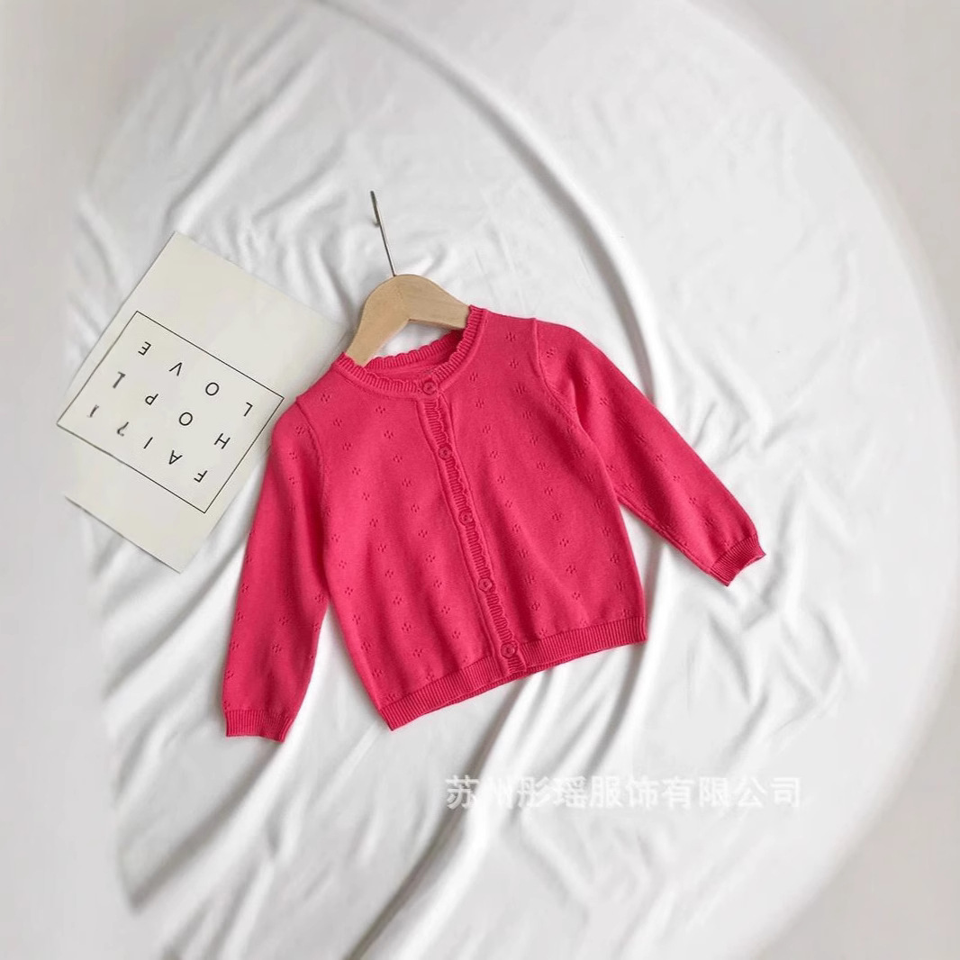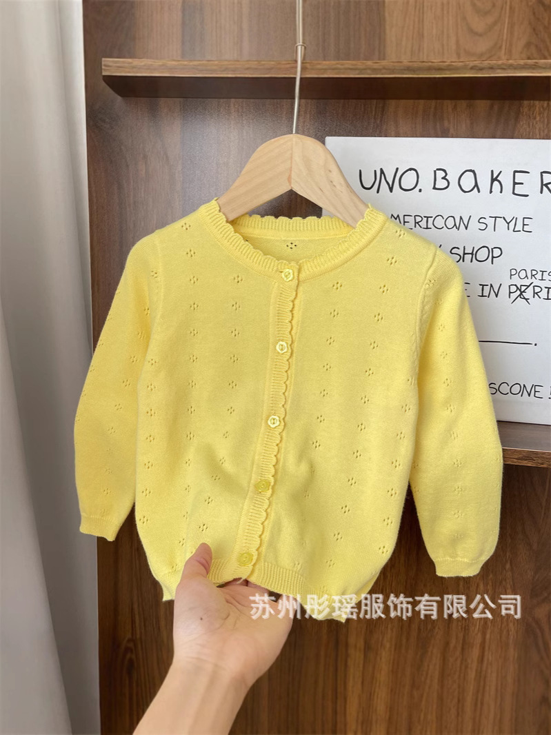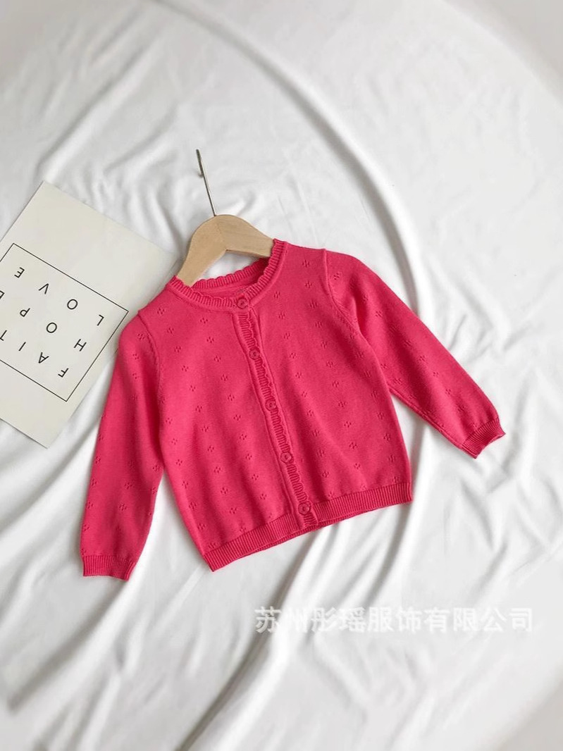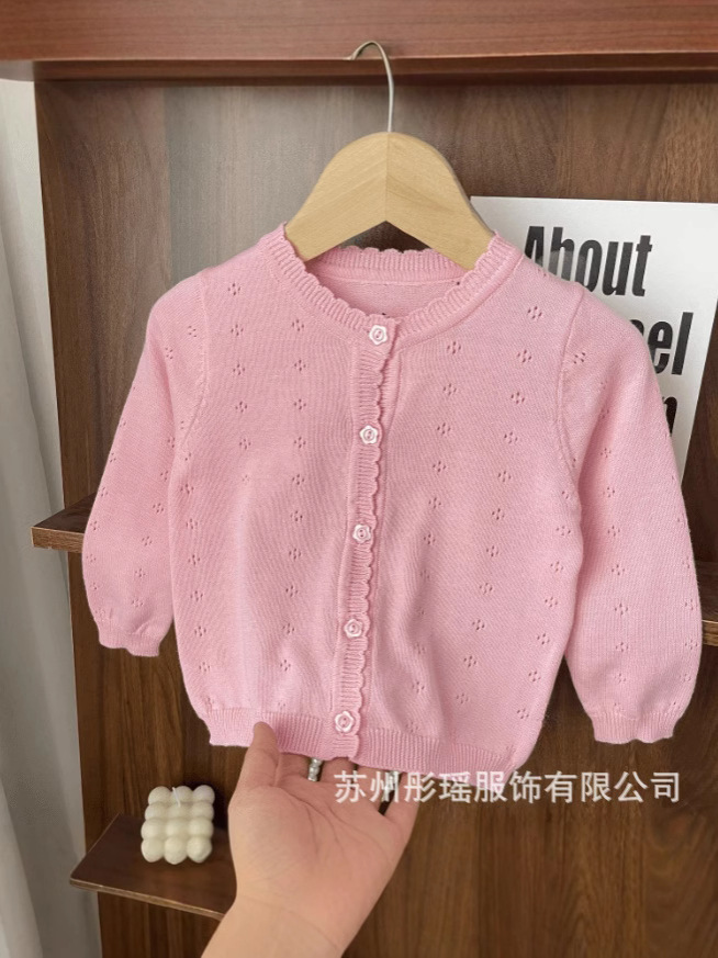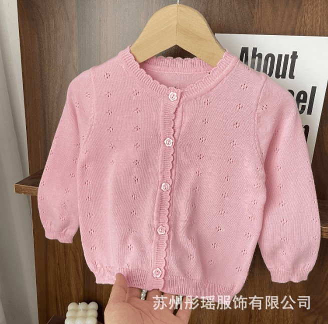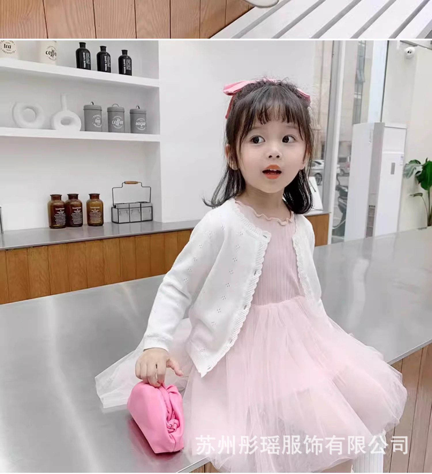 여자 아기 소녀 니트 스웨터 카디건 봄, 여름, 가을 외부 얇은 소녀 에어컨 작은 코트 어린이 선 스크린 화이트 착용