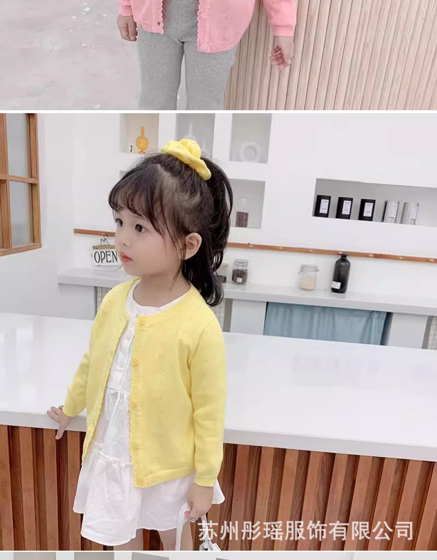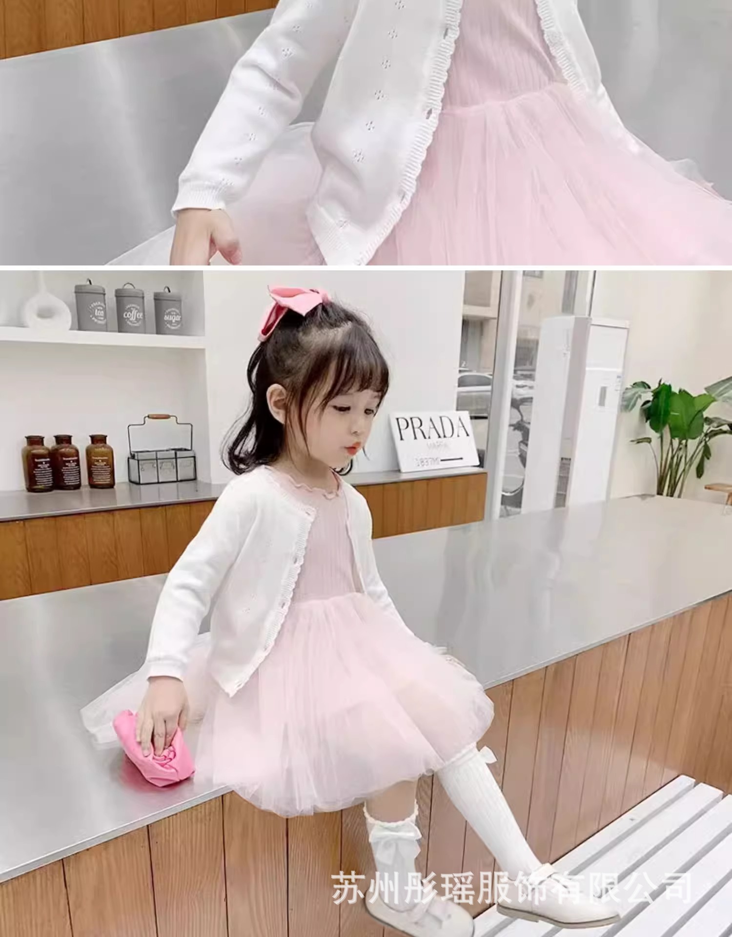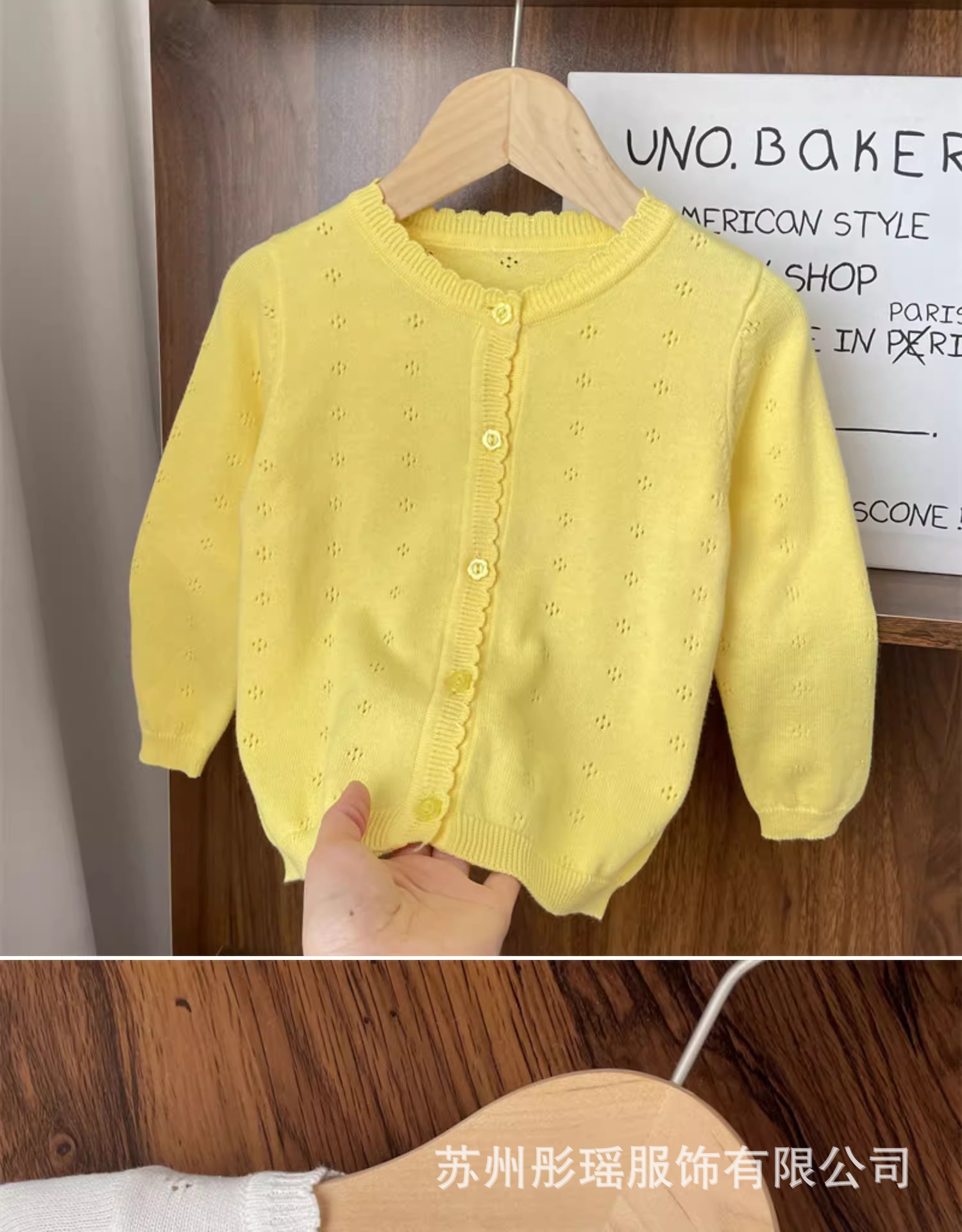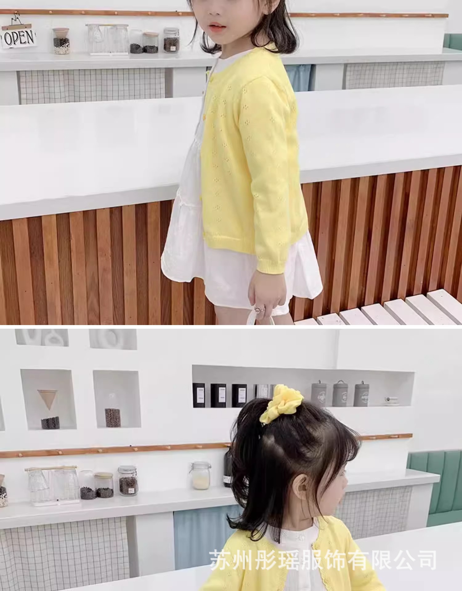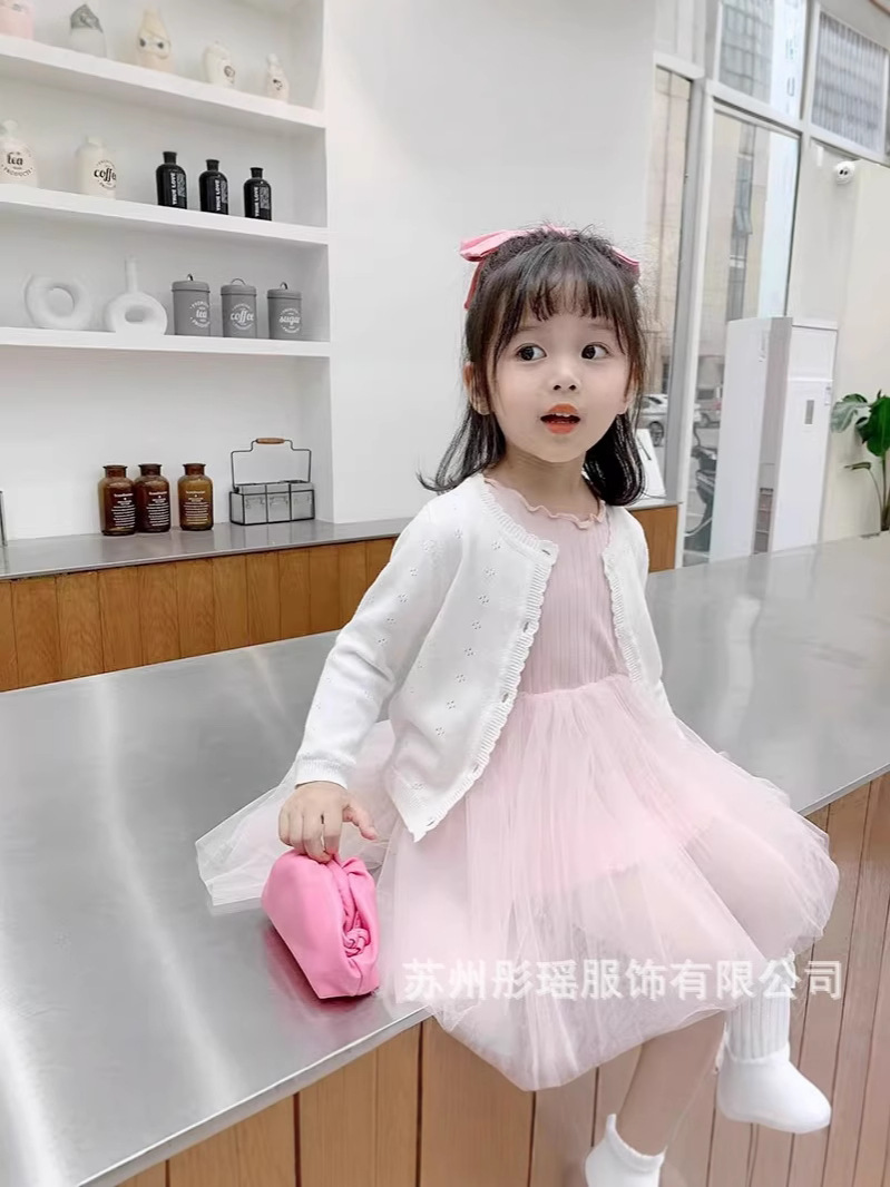 여자 아기 소녀 니트 스웨터 카디건 봄, 여름, 가을 외부 얇은 소녀 에어컨 작은 코트 어린이 선 스크린 화이트 착용스토어 가기