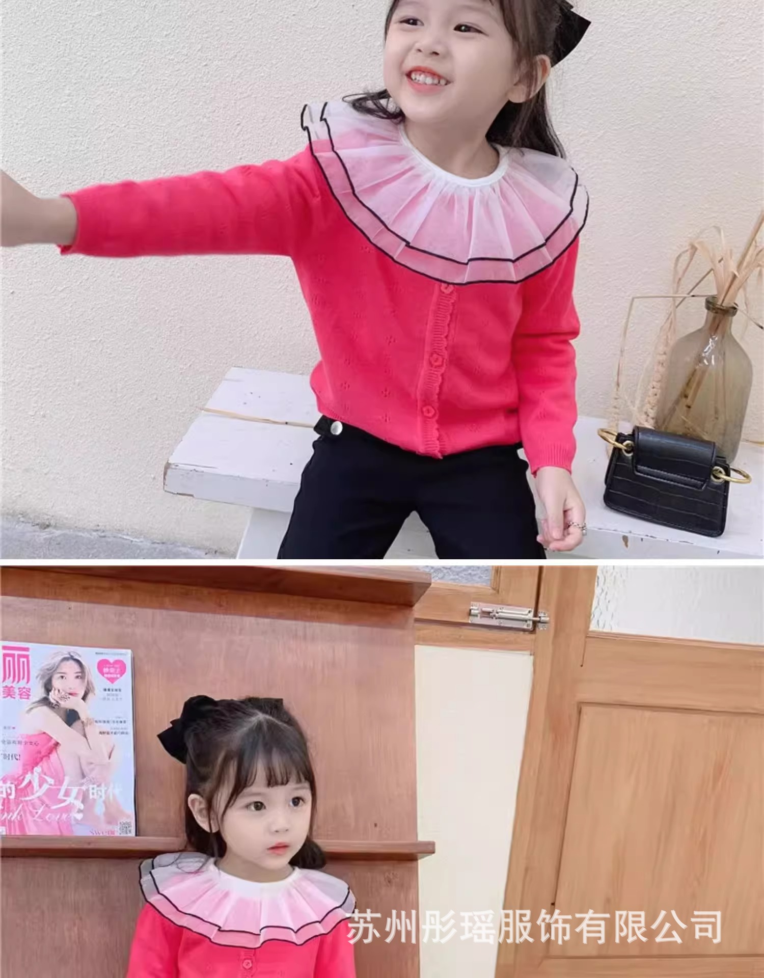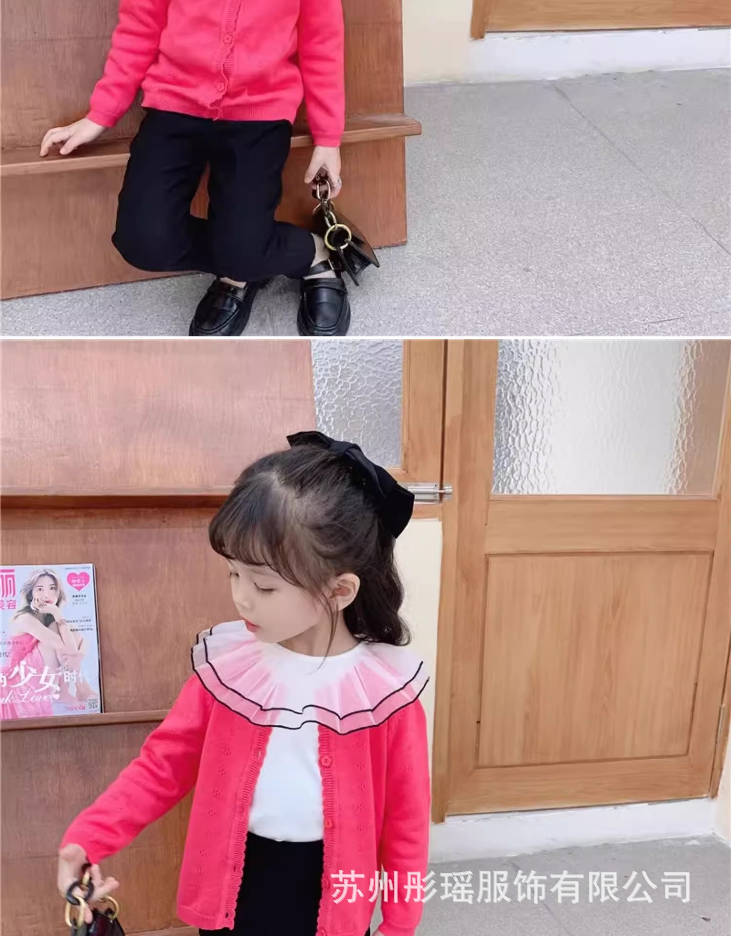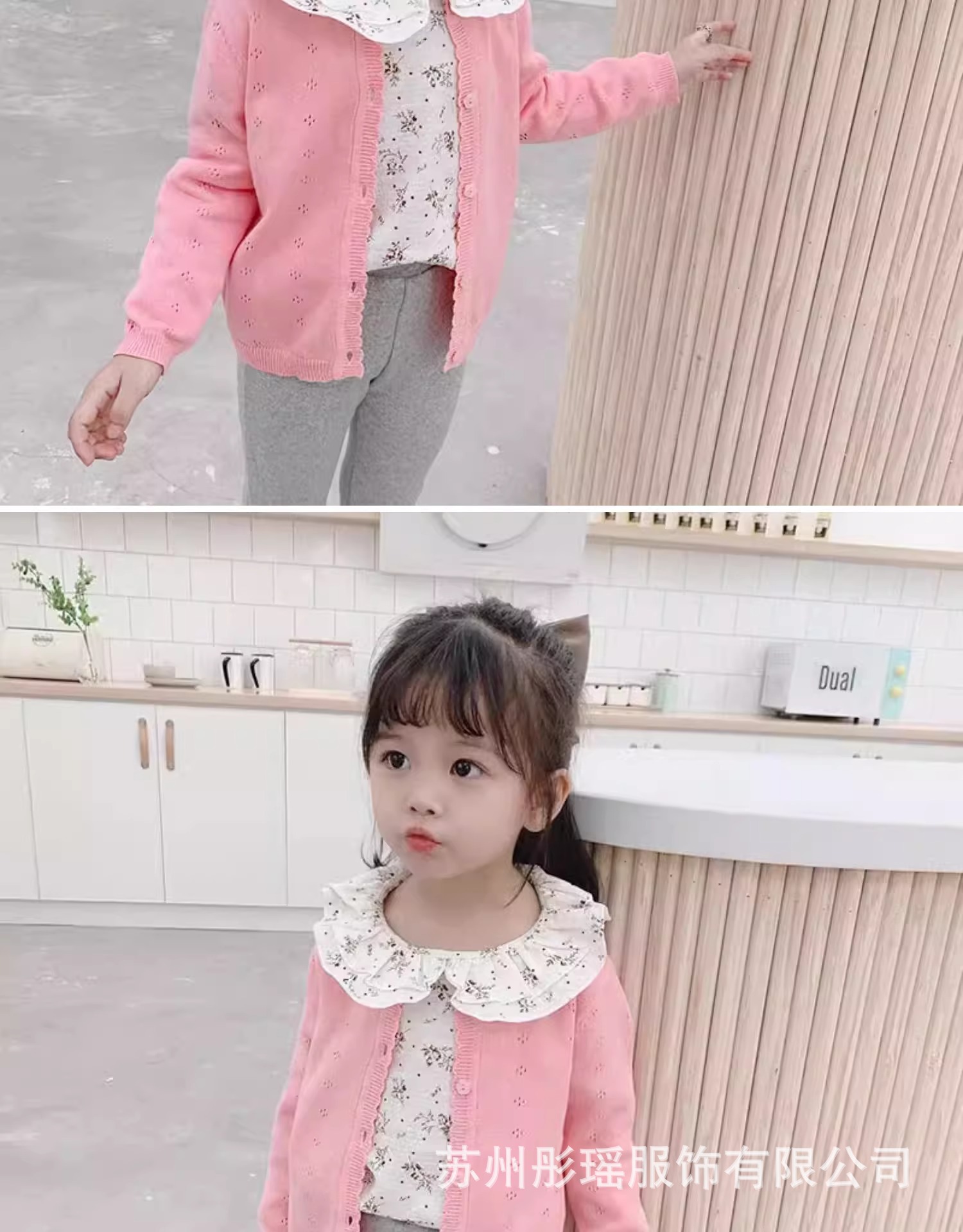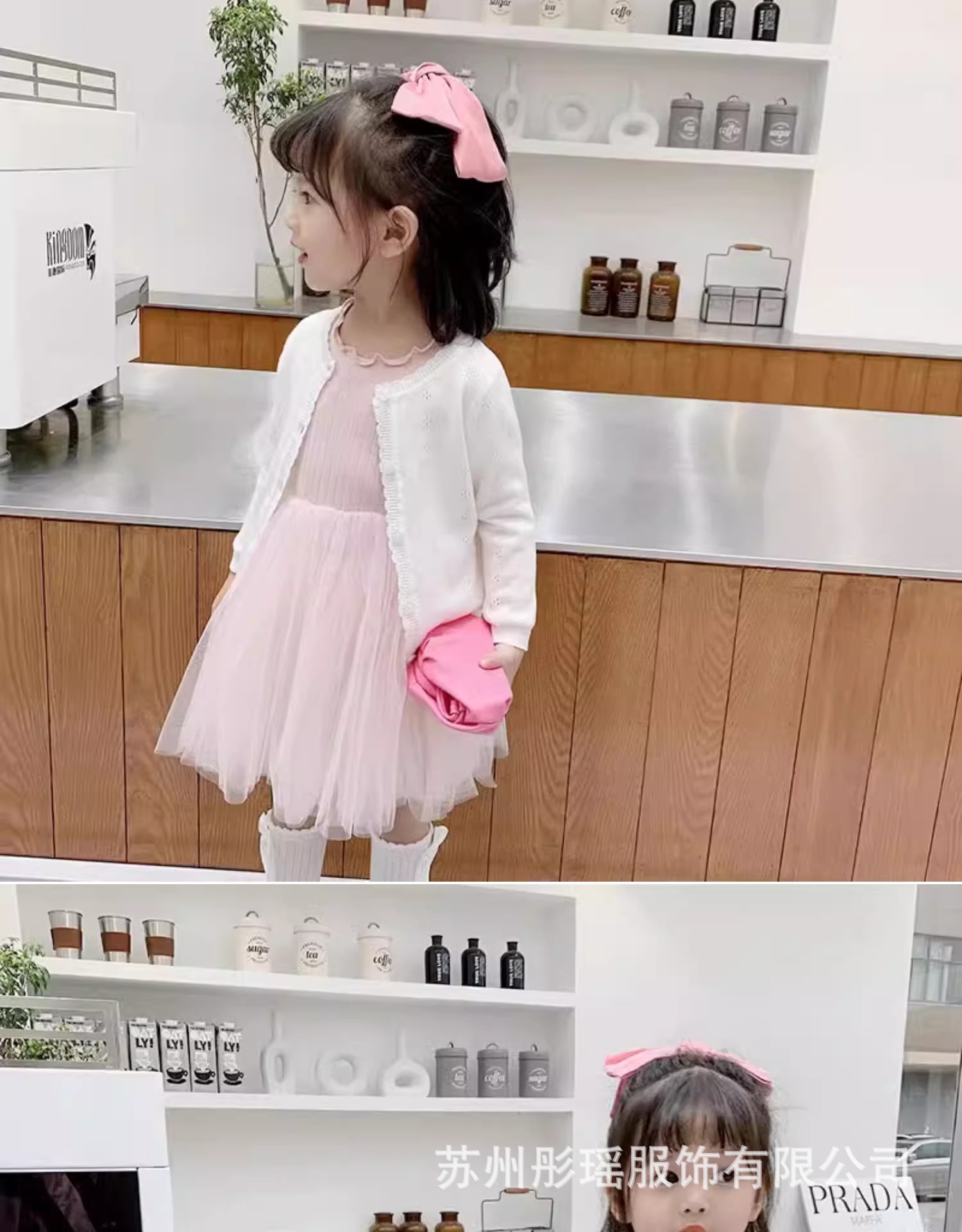 여자 아기 소녀 니트 스웨터 카디건 봄, 여름, 가을 외부 얇은 소녀 에어컨 작은 코트 어린이 선 스크린 화이트 착용스토어 가기