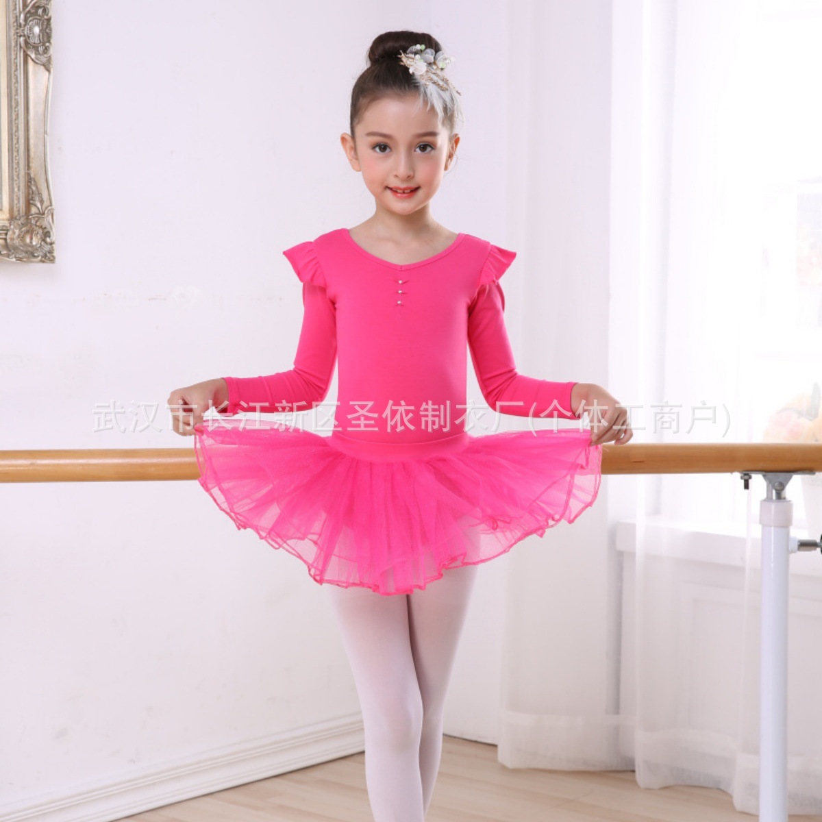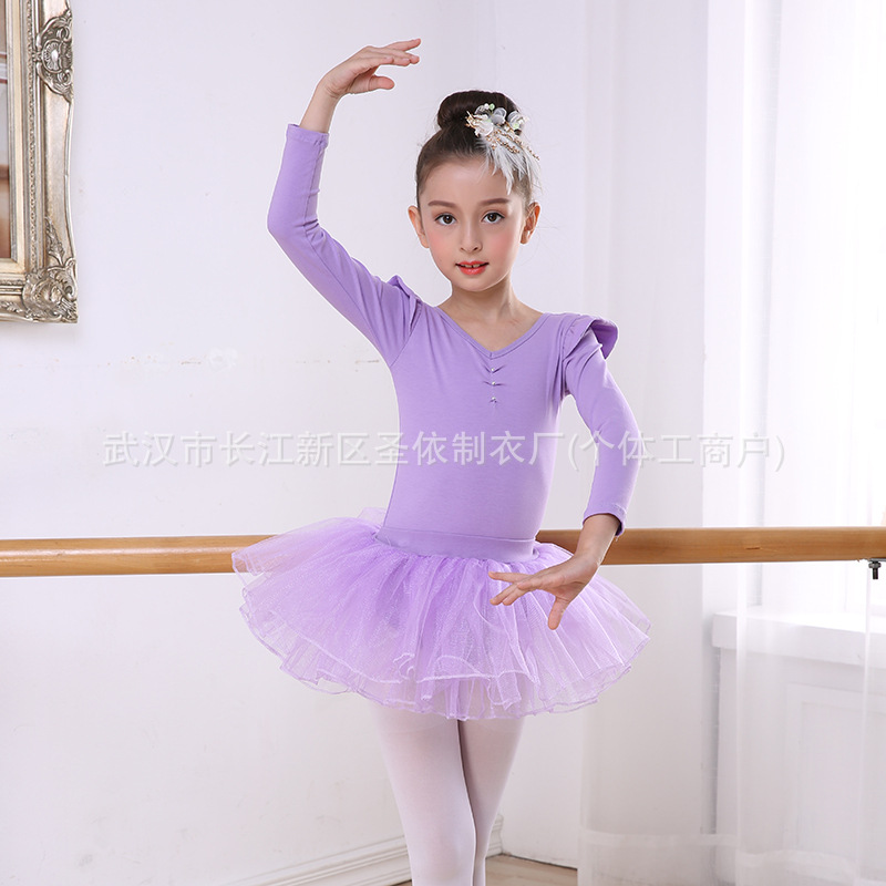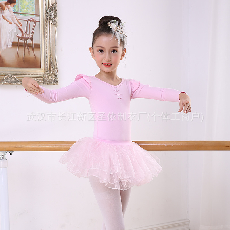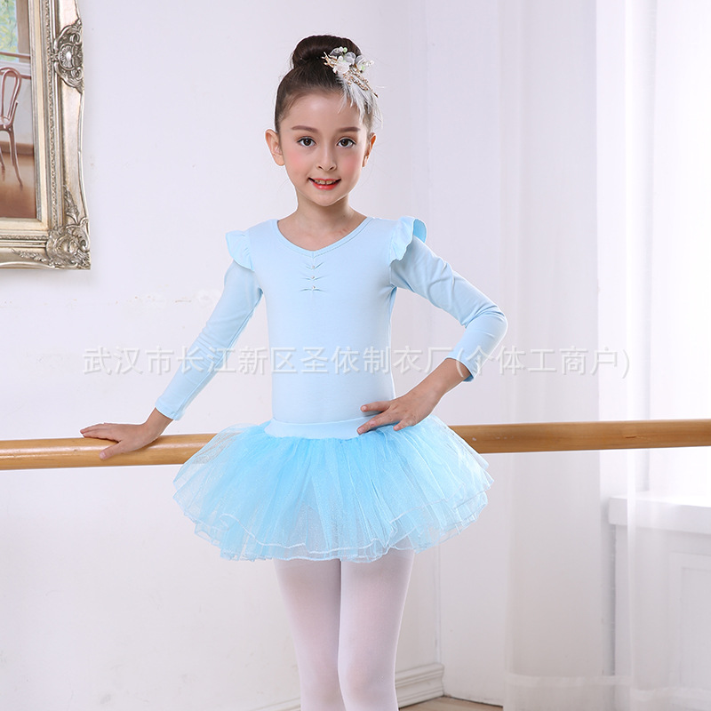 여아 연습복 거즈 스커트 스플릿 발레 댄스 의상 겨울 긴팔 라틴 댄스 스커트 긴팔 유아 시험스토어 가기