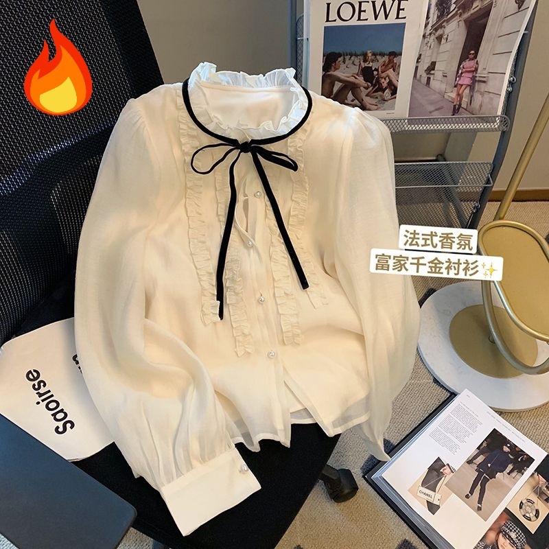 A6C 프랑스 패션 쉬폰 셔츠 여성의 2025 봄과 가을 새로운 디자인 센스 착용 하이 엔드 외국 스타일 라이닝