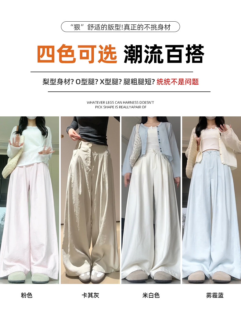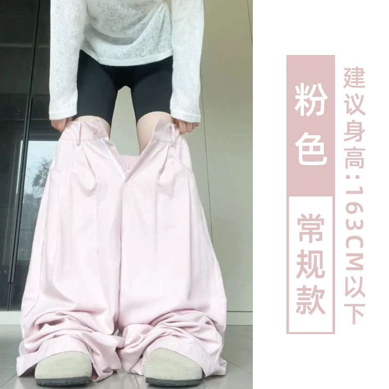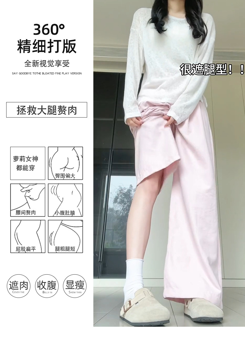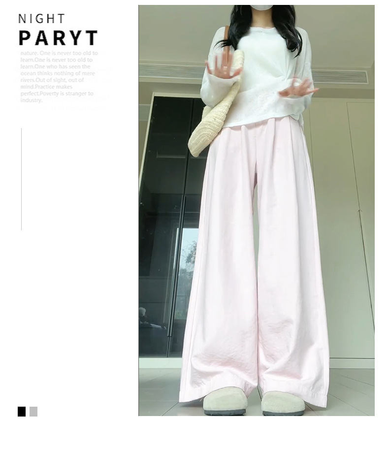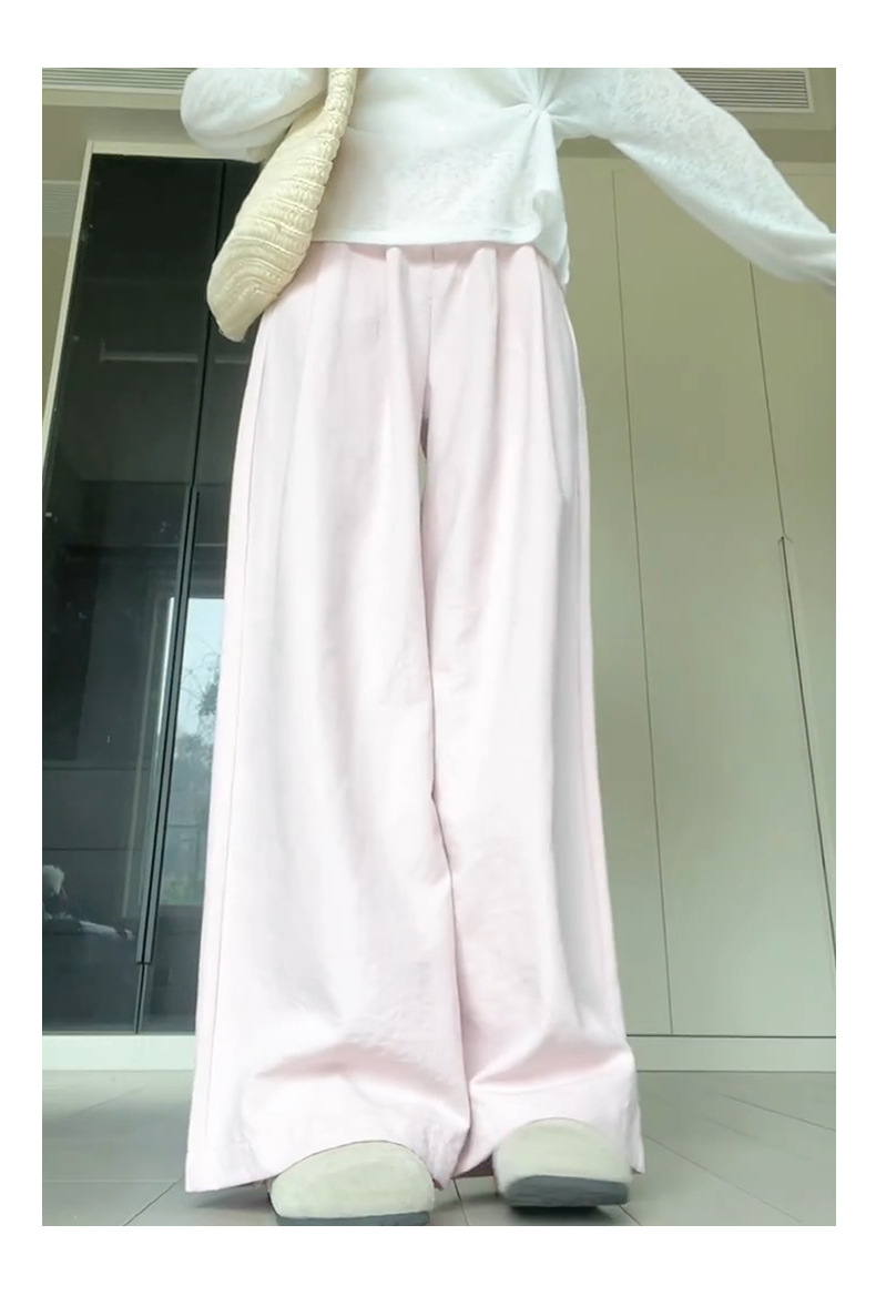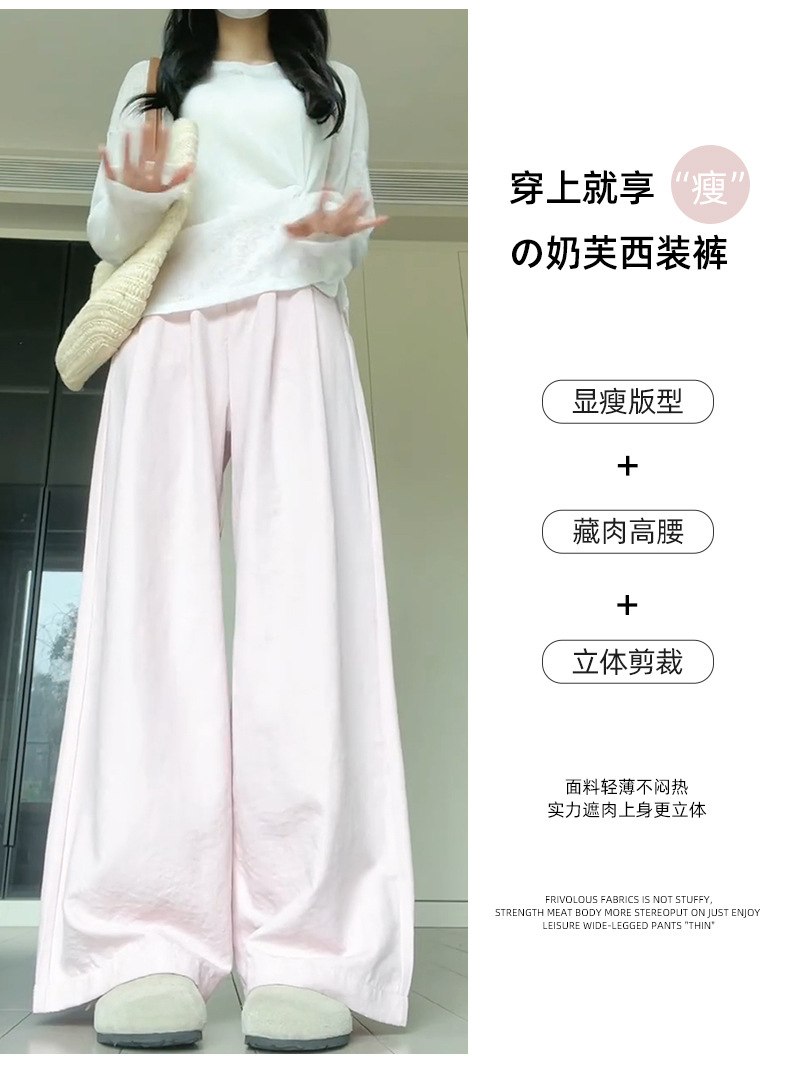 핑크 밀크 푸 세트 넓은 다리 바지 여성 여름 휴식 게으른 스타일 높은 허리 느슨한 슬리밍 아이스 실크 바지스토어 가기