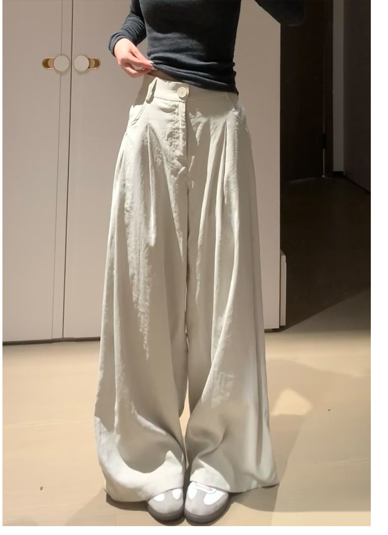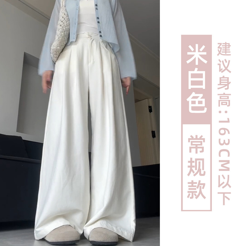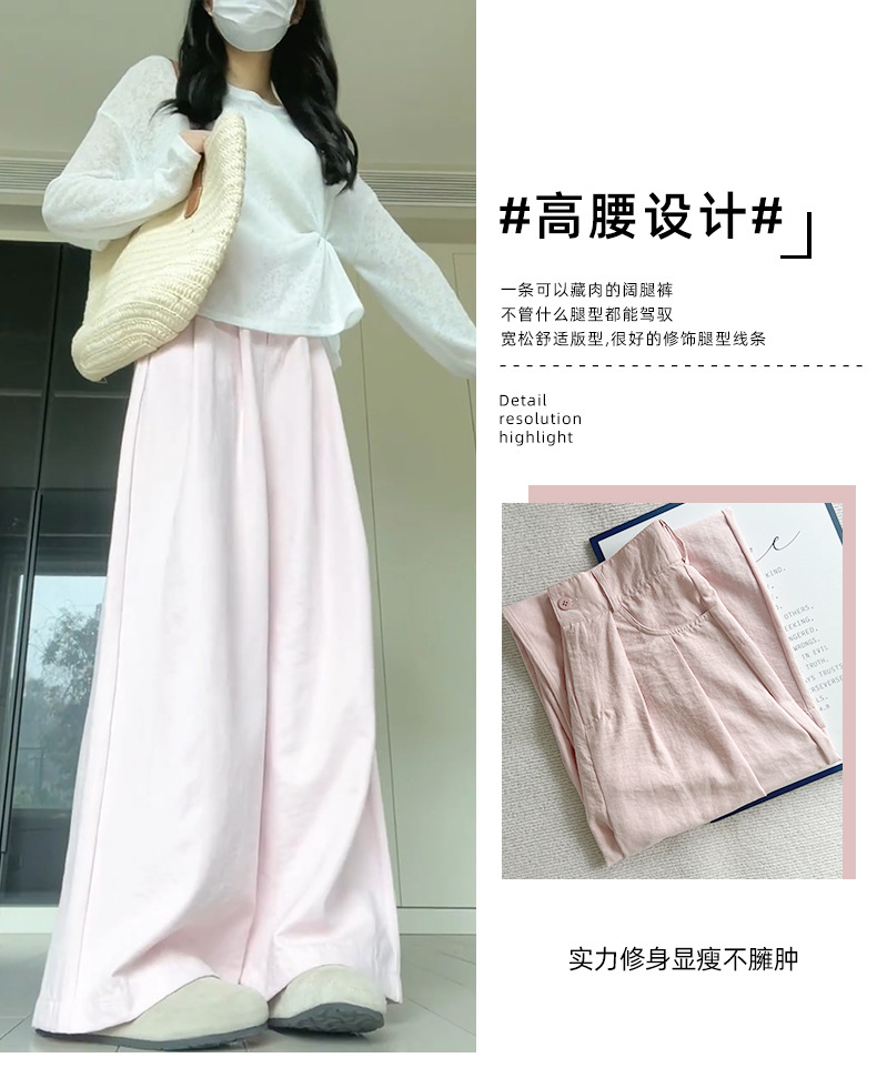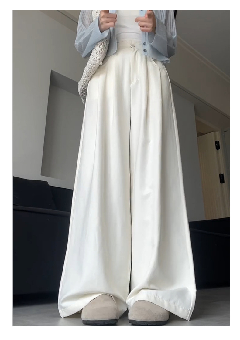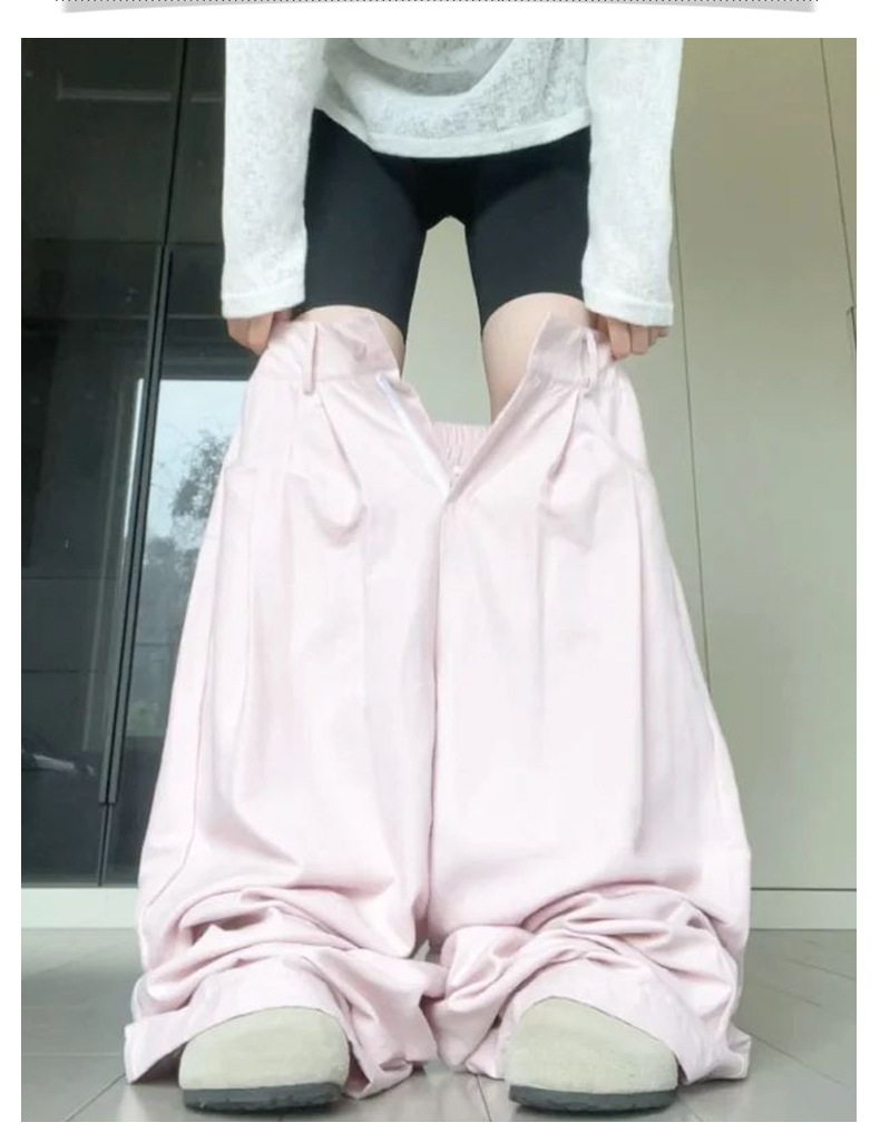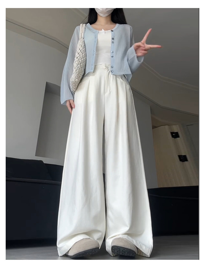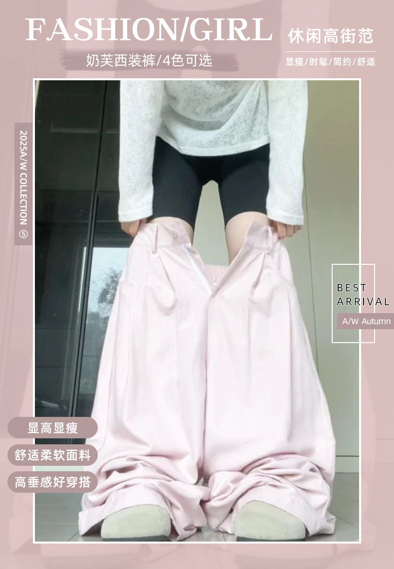 핑크 밀크 푸 세트 넓은 다리 바지 여성 여름 휴식 게으른 스타일 높은 허리 느슨한 슬리밍 아이스 실크 바지스토어 가기