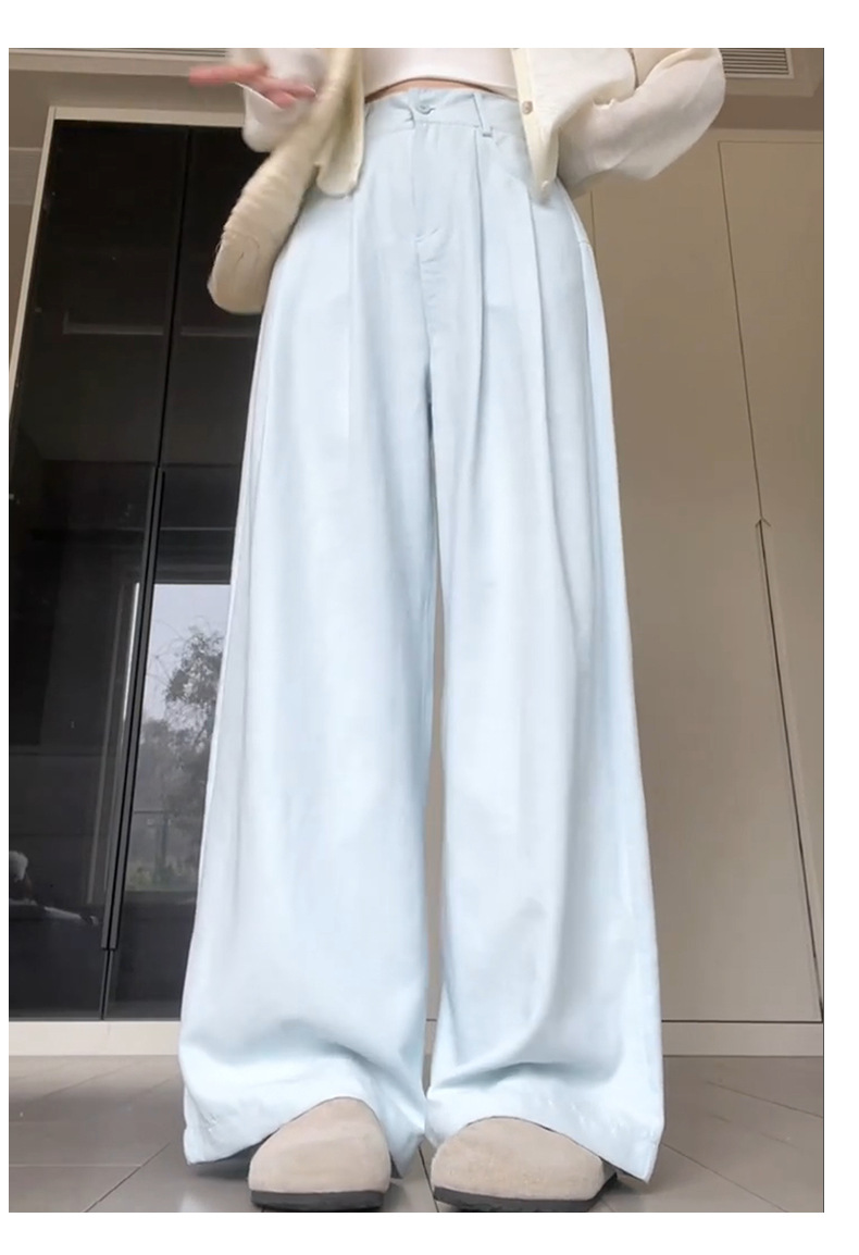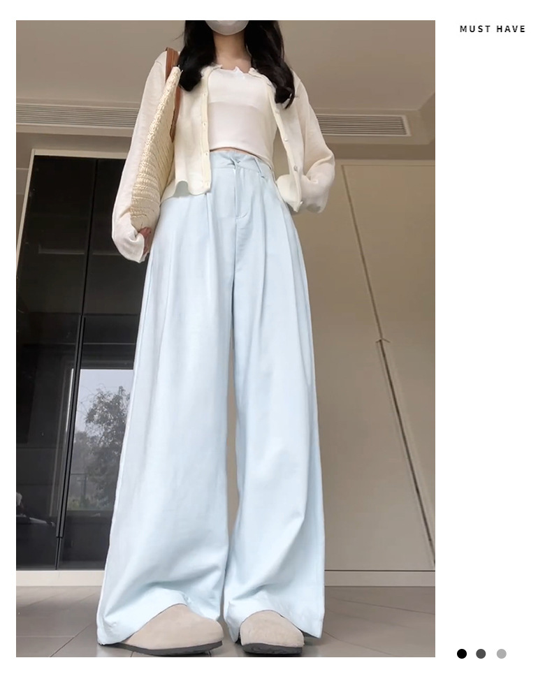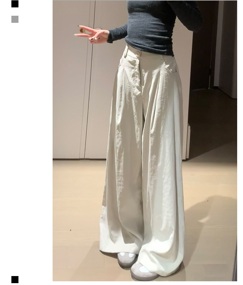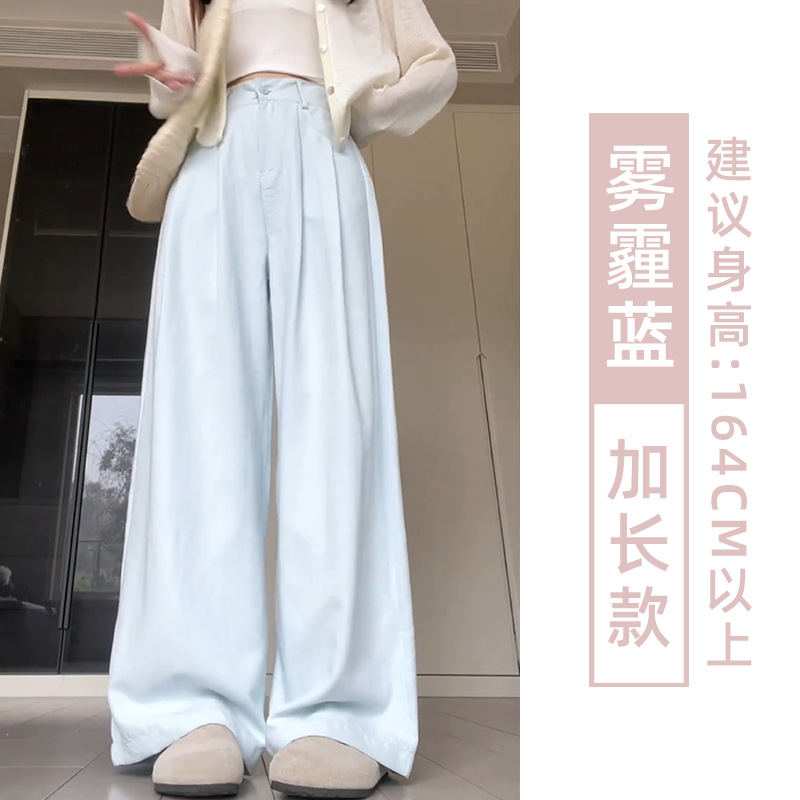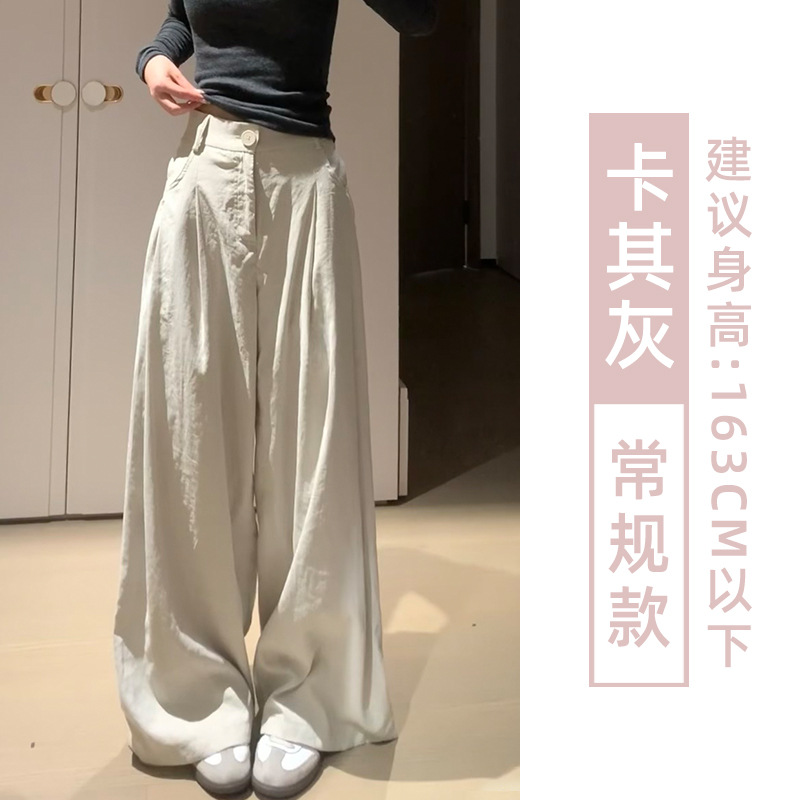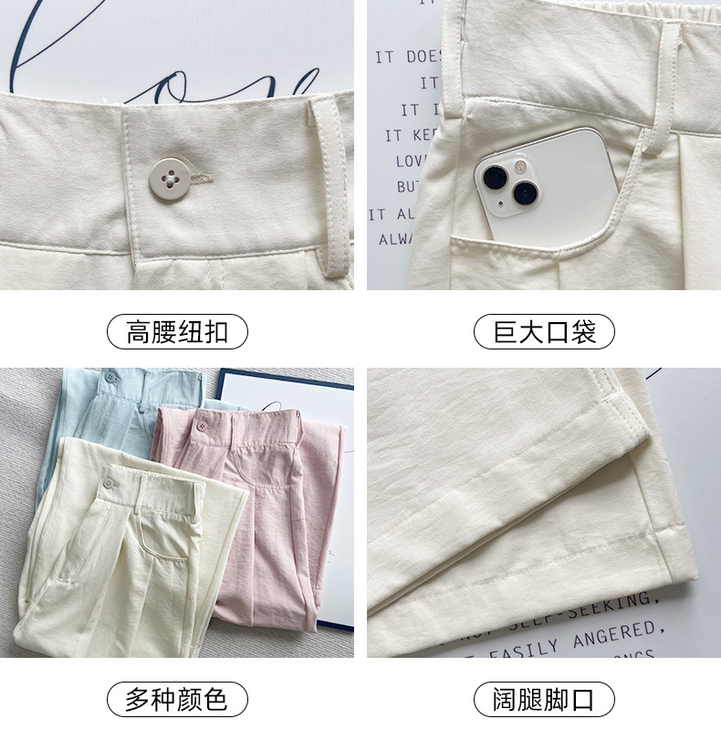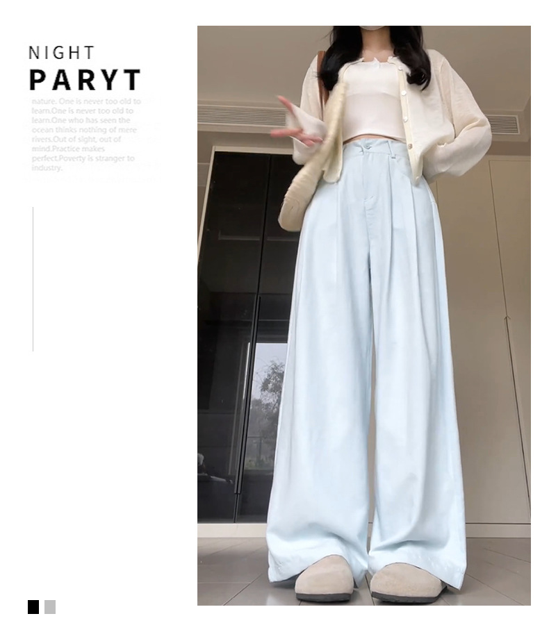 핑크 밀크 푸 세트 넓은 다리 바지 여성 여름 휴식 게으른 스타일 높은 허리 느슨한 슬리밍 아이스 실크 바지스토어 가기
