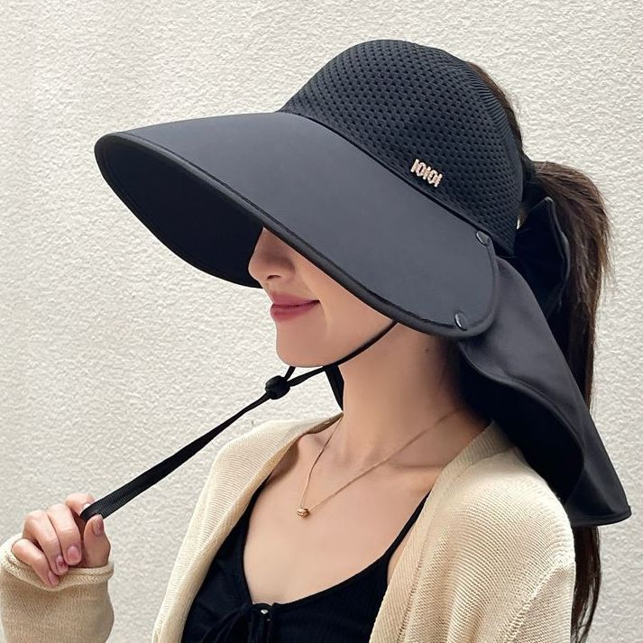 목도리 선 스크린 모자 어린이 여름 야외 안티 자외선 공기 탑 모자 넓힌 빅 햇 브림 승마 얼굴 태양 모자