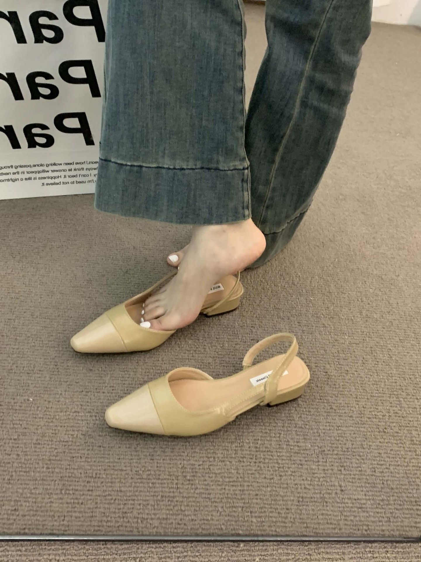 로우 힐 발가락 샌들 여성 패션 프랑스 스타일 메리 제인 여름 의상 뾰족한 부드러운 샤넬 스타일 원피스 우아한 여성 신발스토어 가기