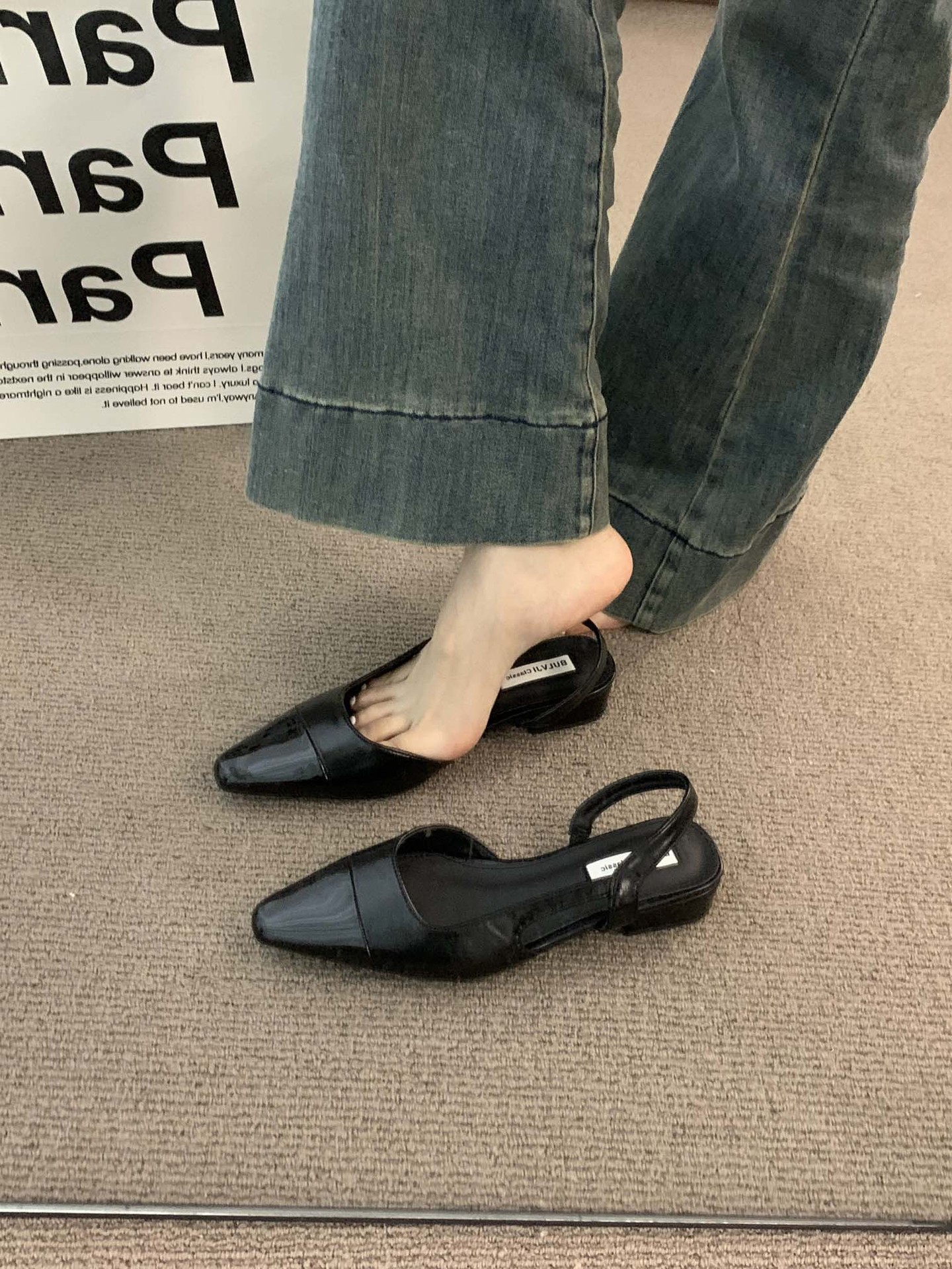 로우 힐 발가락 샌들 여성 패션 프랑스 스타일 메리 제인 여름 의상 뾰족한 부드러운 샤넬 스타일 원피스 우아한 여성 신발