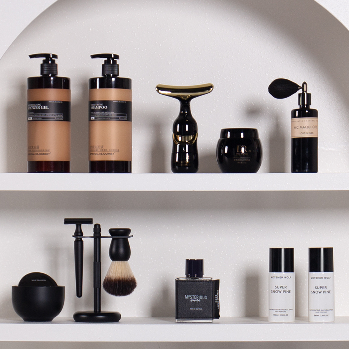 심플하고 가벼운 럭셔리 모델 룸 욕실 화장품 및 스킨 케어 빈 병 장식품 달린 옷장 드레싱 테이블 장식품스토어 가기