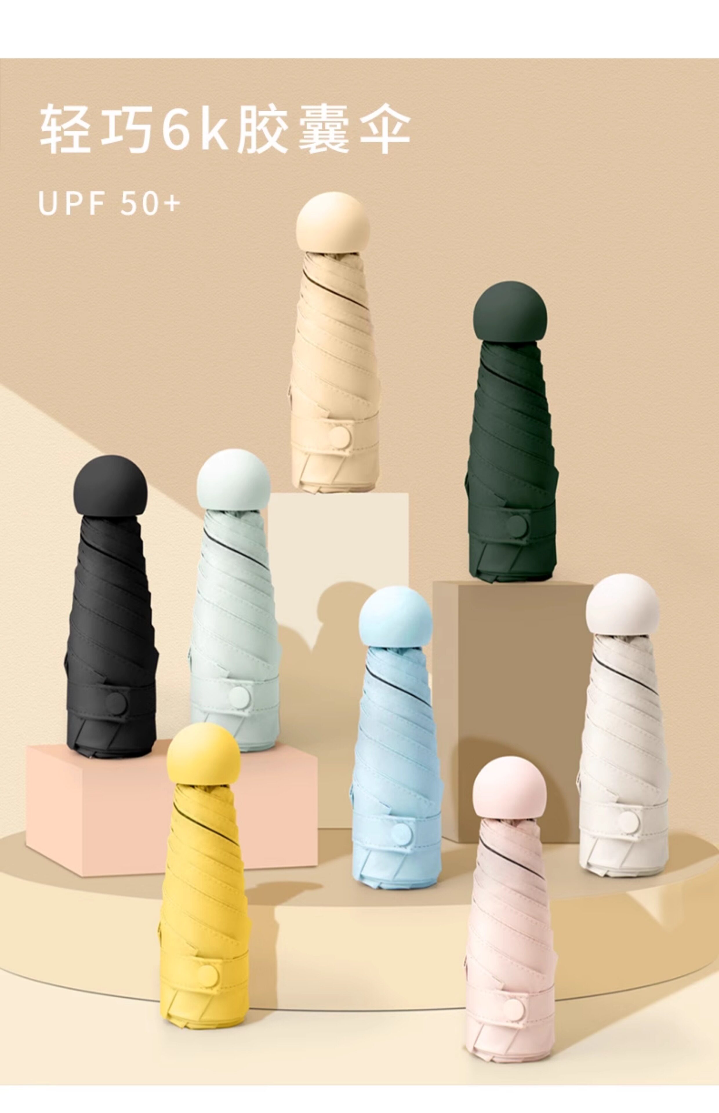 50% off 고급형 접이식 우산, 미니 캡슐 우산, 자외선 차단, 여성용 자외선 차단 우산, A6 뼈대, 어린이용, 햇볕과 비 모두를 막아주는 우산스토어 가기