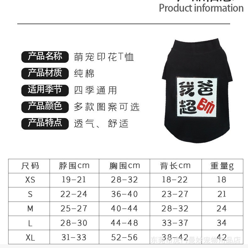 애완동물 용품 프린트 레터링 강아지 고양이 면 소형 및 중형견 의류 제조업체 재고 있음 기본형 레터링 포함스토어 가기