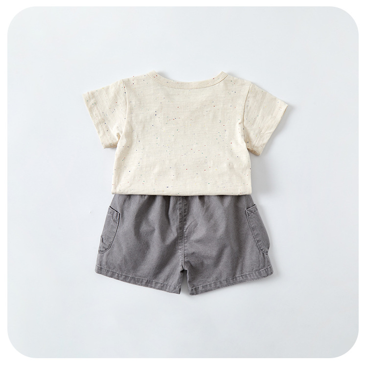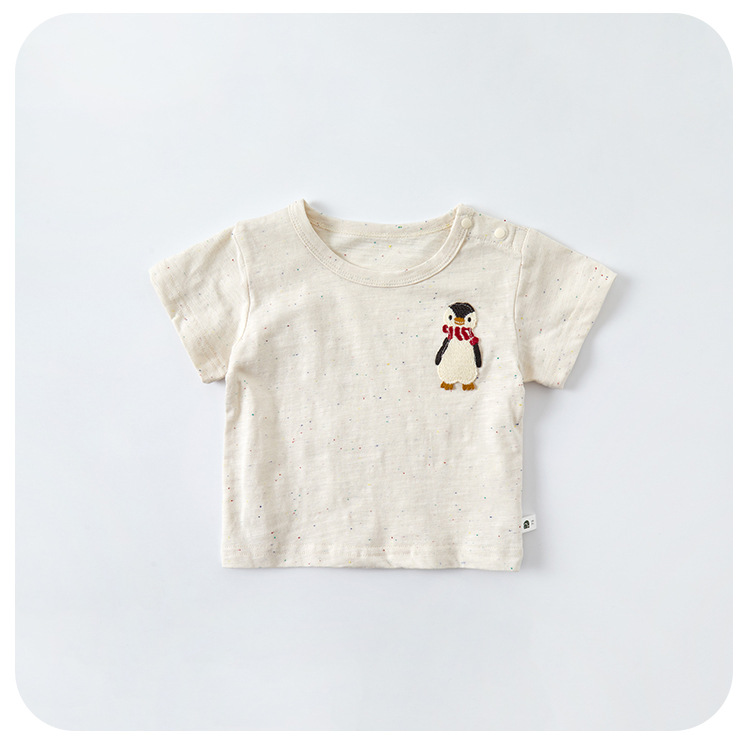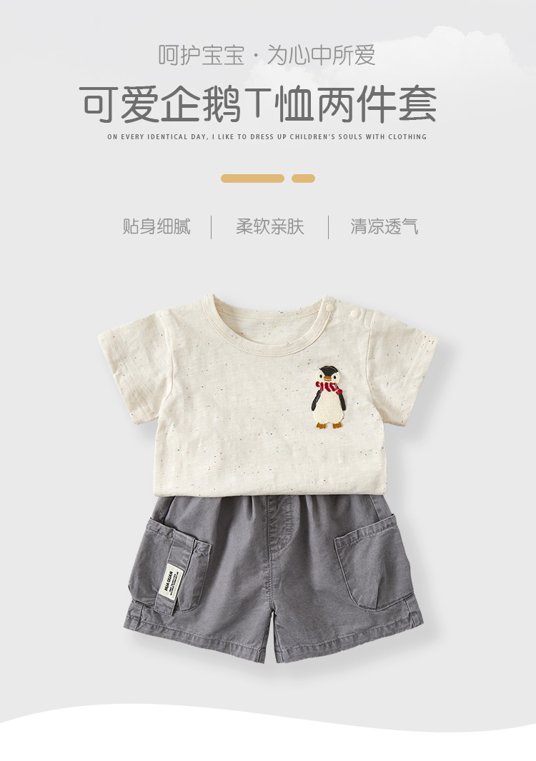 유아 반팔 세트 2025 여름 새로운 도착 남성과 아기의 얇은 펭귄 탑 크록 바지 캐주얼 투피스 세트