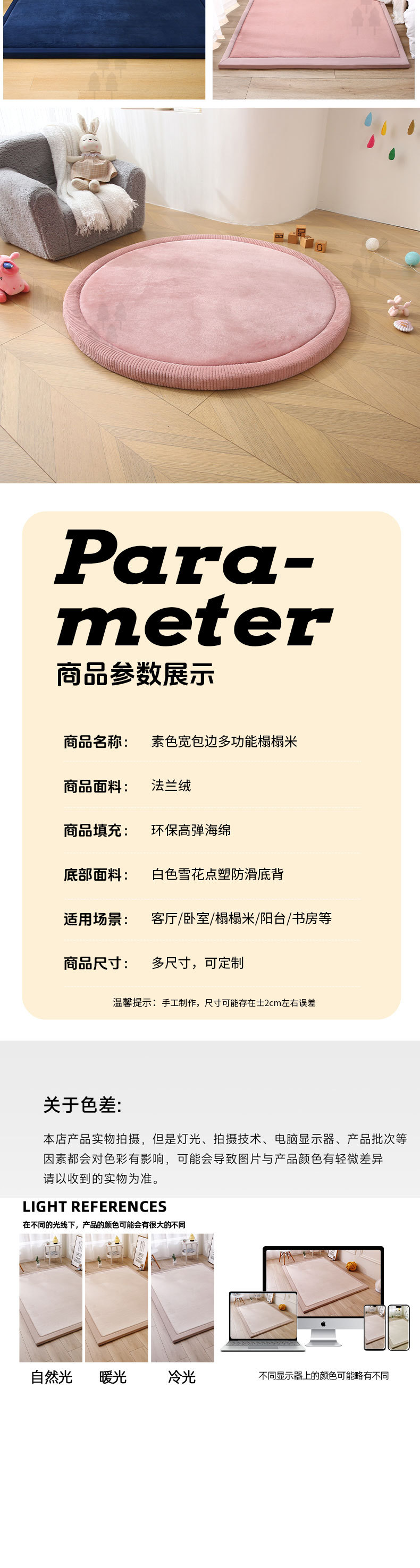 둥근 바닥 매트 거실 두꺼운 드롭 방지 아기 크롤링 매트 어린이 독서 공간 소녀의 침실 먼지 방지 미끄럼 방지 매트