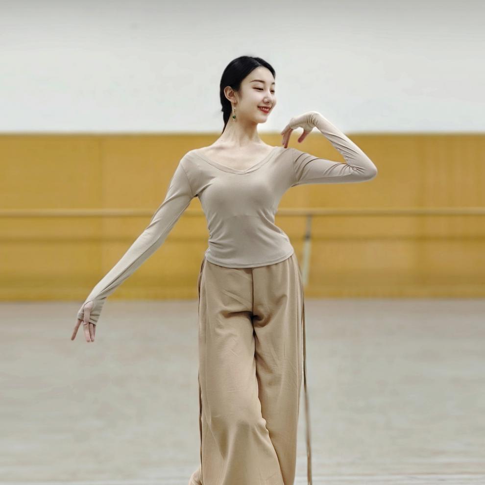 C9Y 가을과 겨울 댄스 의류 v-neck 연습 의류 클래식 댄스 현대 댄스 중국 댄스 발레 바디 의류 기본 훈련 요가 의류
