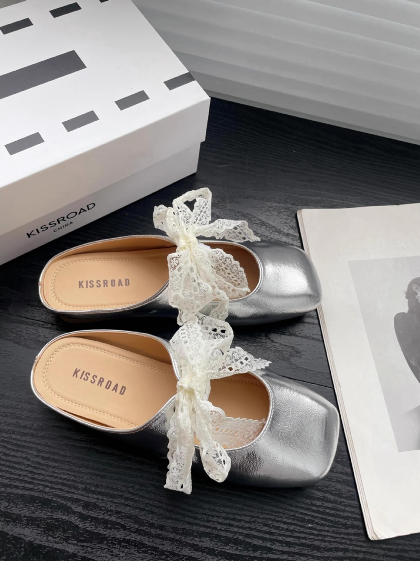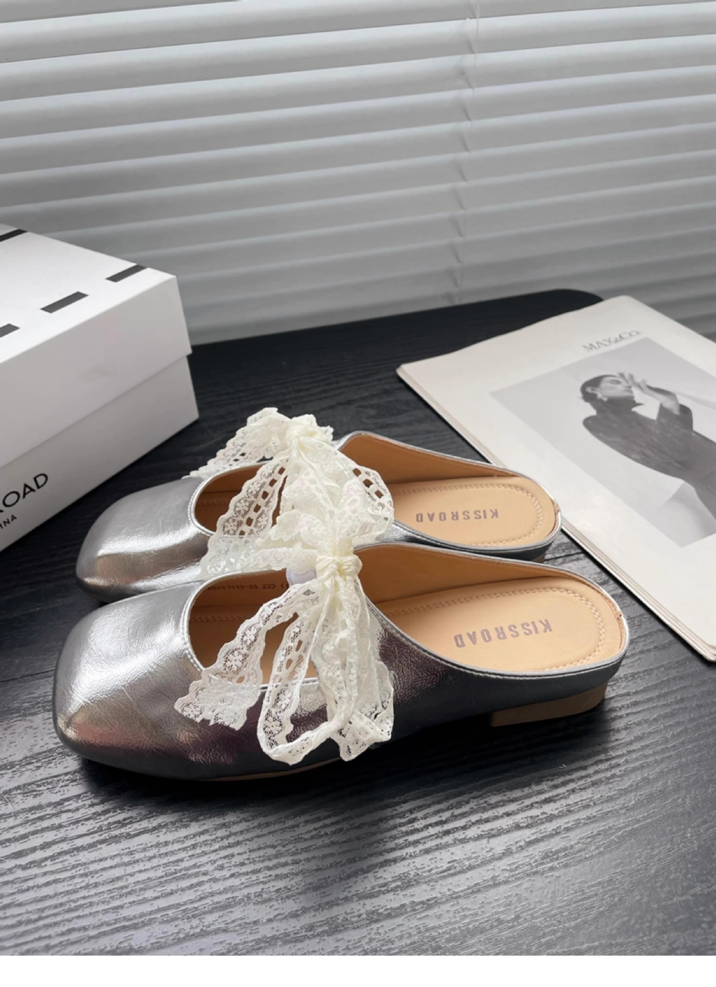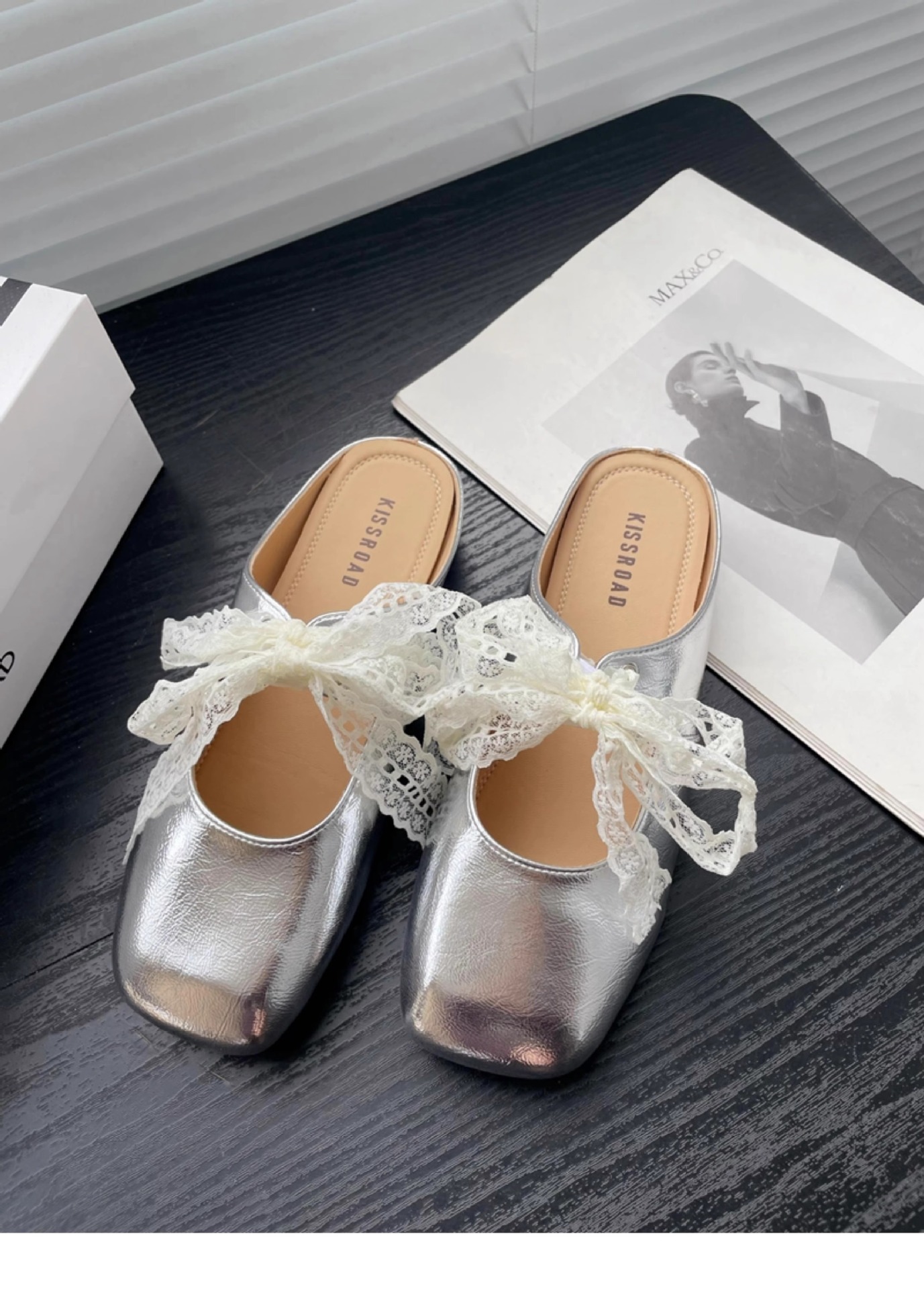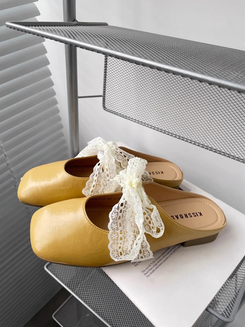 레이스 활 반 슬리퍼 여성의 봄과 여름 2025 새로운 복장 실버 두꺼운 힐 소프트 가죽 뮬러 신발 바오터우 슬리퍼스토어 가기