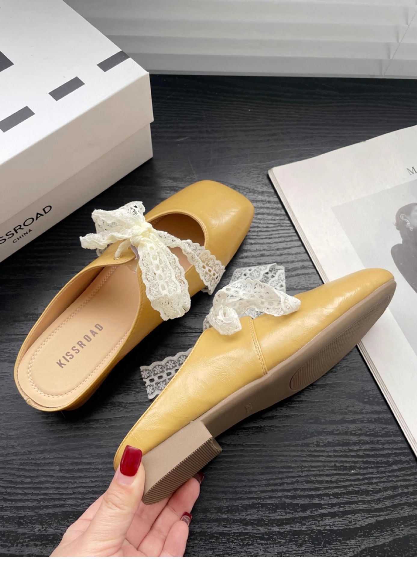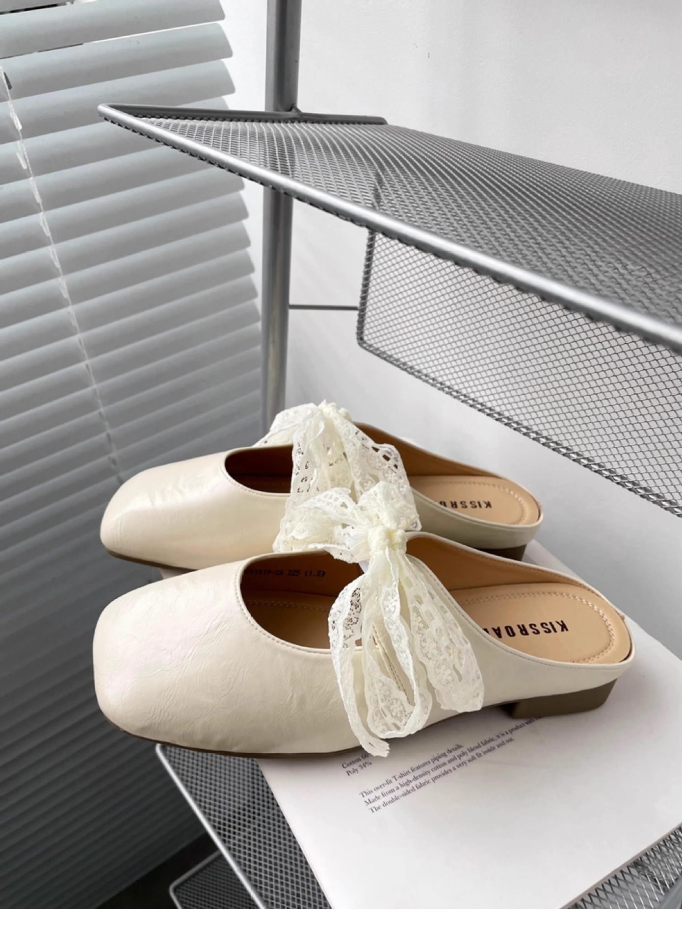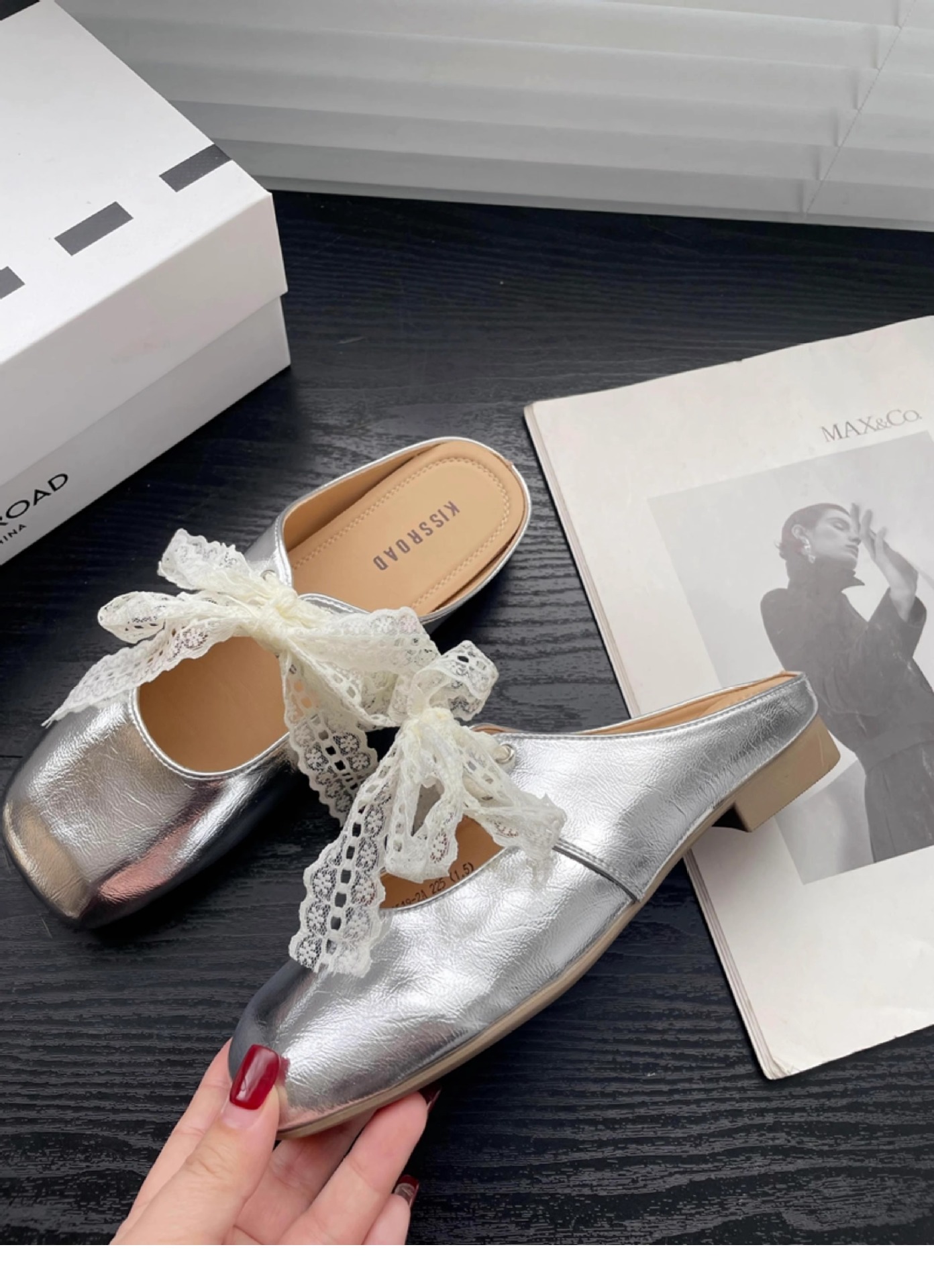 레이스 활 반 슬리퍼 여성의 봄과 여름 2025 새로운 복장 실버 두꺼운 힐 소프트 가죽 뮬러 신발 바오터우 슬리퍼스토어 가기