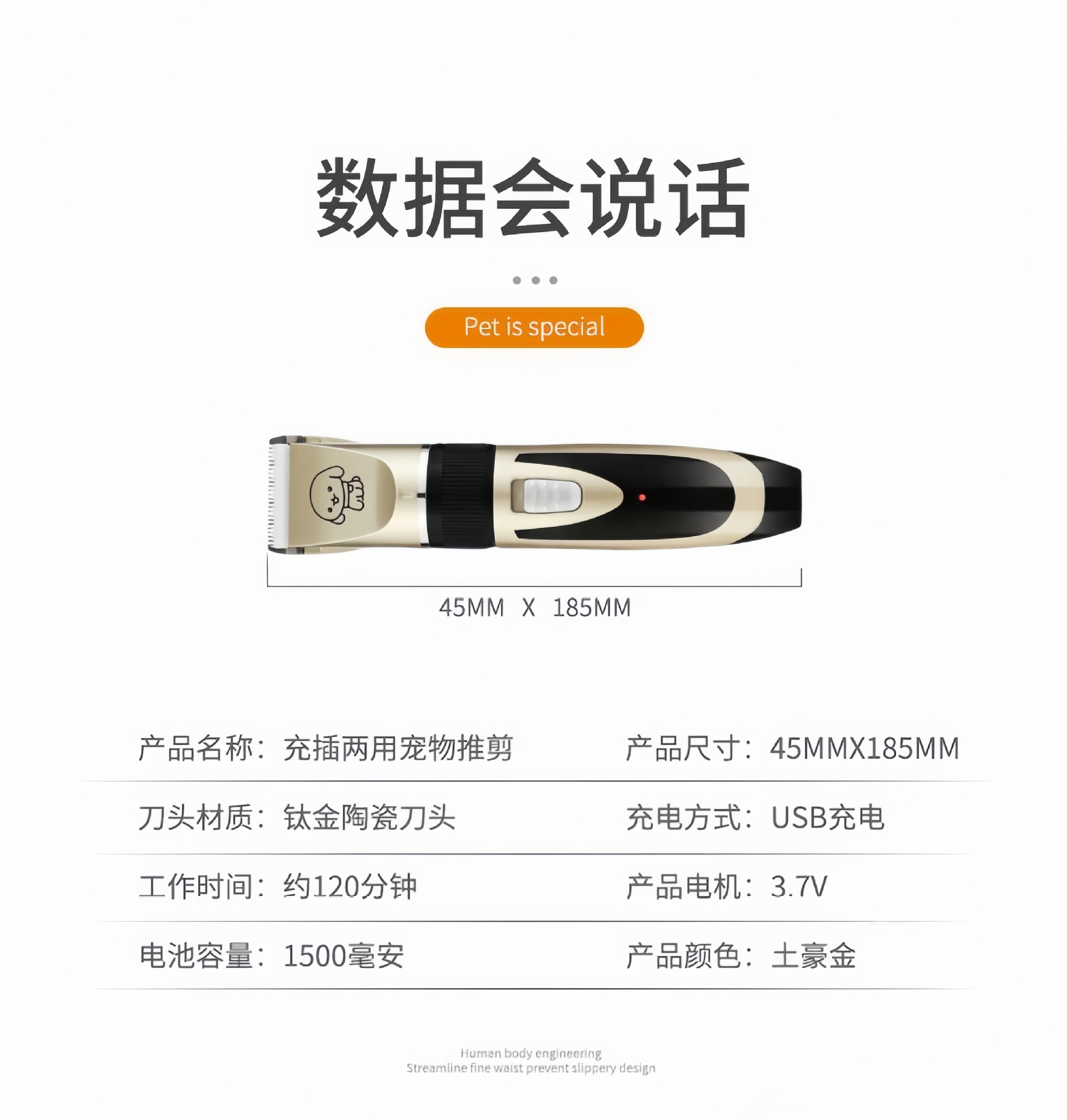 基础配件包含:电推主机.润滑油.毛刷.说明书.USB充电线.4个限位尺.彩盒 装箱数:普通彩盒40个/1箱 单个重量:300g