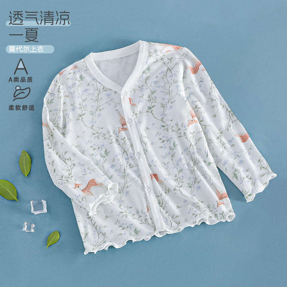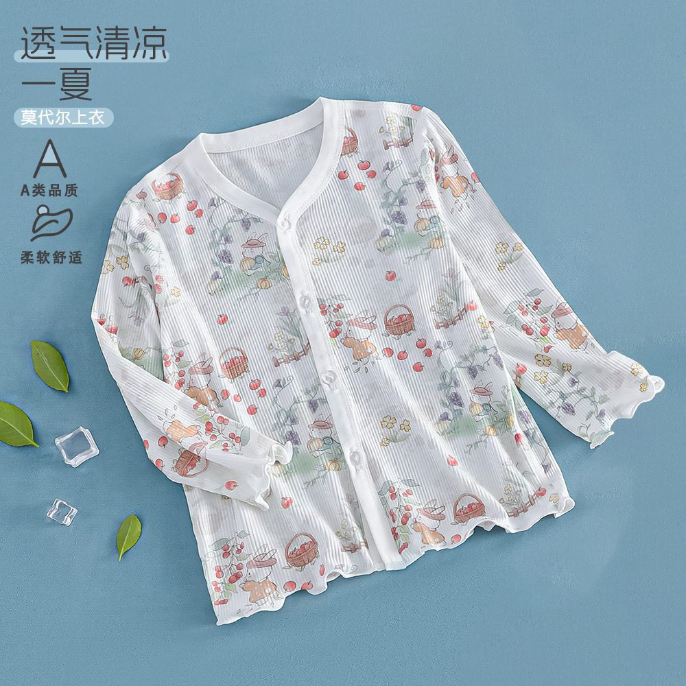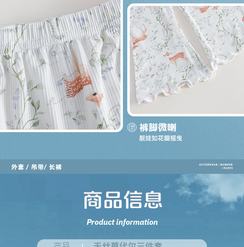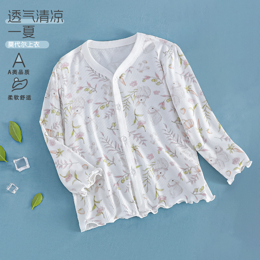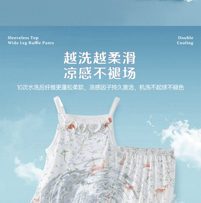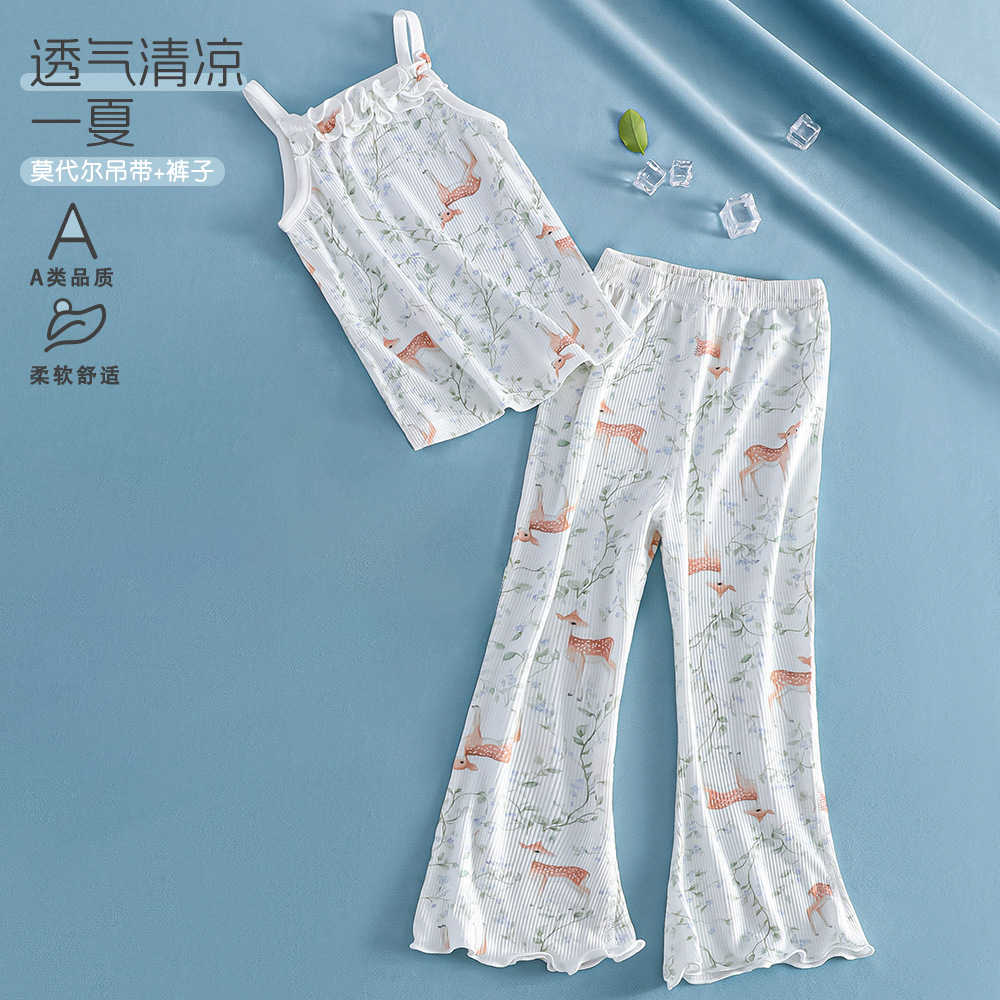 여름 얇은 여아 모달 어린이 잠옷 A 쿨 아이스 실크 걸스 에어컨 의류 3 피스 홈 의류스토어 가기
