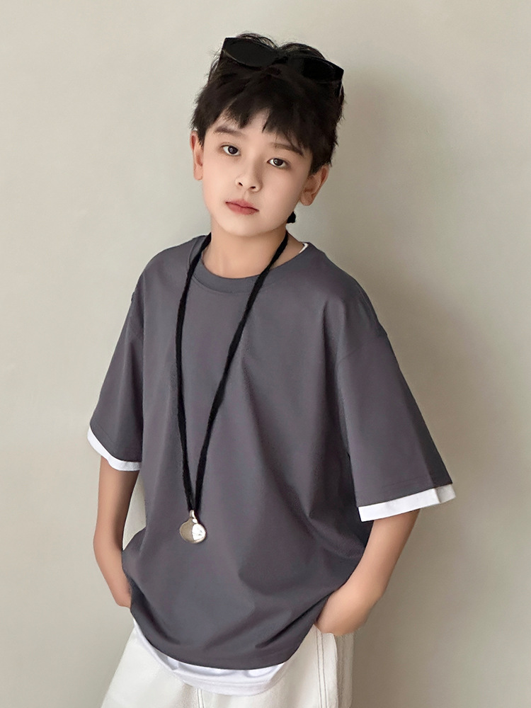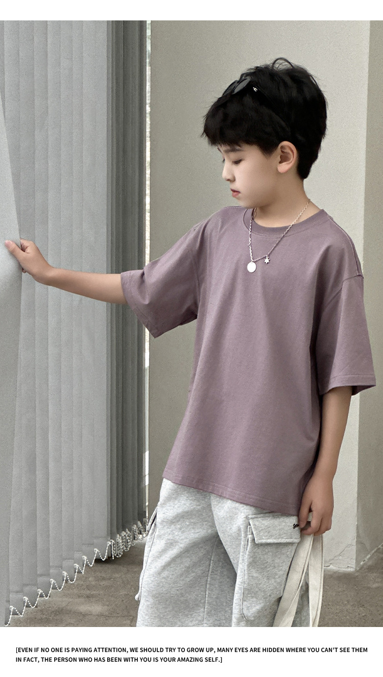 아동용 반팔 티셔츠 2025 여름 신상 중대형 남아용 도파민 심플 무지 티셔츠 남아 상의