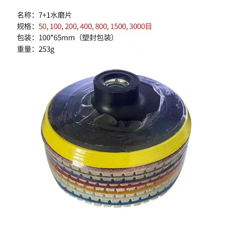 • 7+1(3inch 흰색 배경 워터 그라인딩 디스크 7개 + M10 접착 디스크 1개) 세트