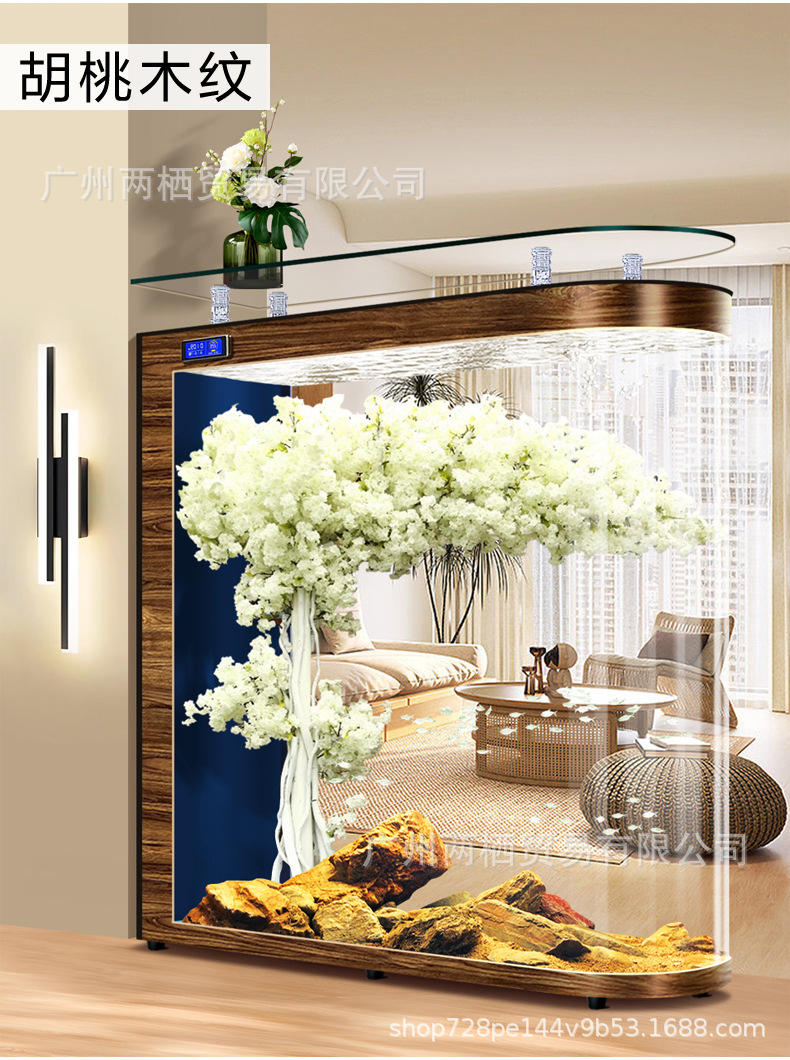 총알 물고기 탱크 거실 바닥 스탠딩 파티션 유리 수족관 가정용 중형 및 대형 스크린 자체 순환 물 교체 없음스토어 가기