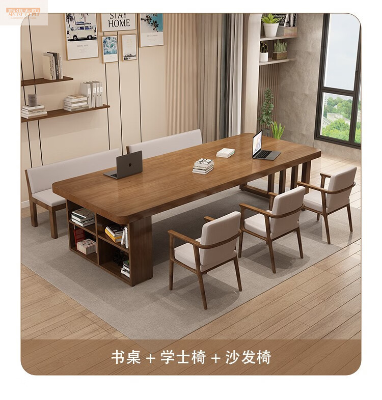 거실 책장 통합 글쓰기 책상 거실 솔리드 우드 롱 데스크 홈 스터디 테이블 사무실 책상 작업대스토어 가기