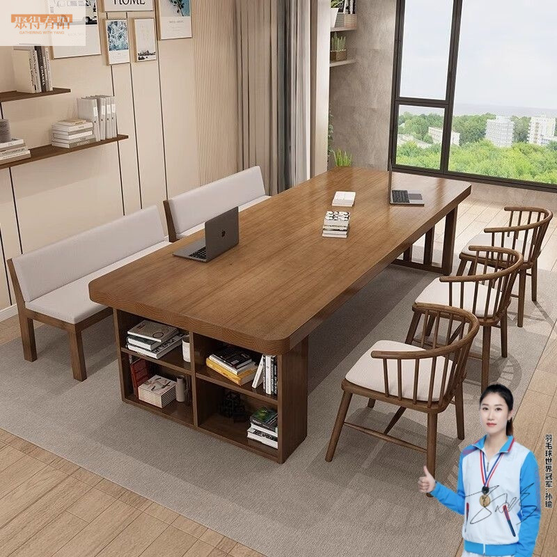 거실 책장 통합 글쓰기 책상 거실 솔리드 우드 롱 데스크 홈 스터디 테이블 사무실 책상 작업대