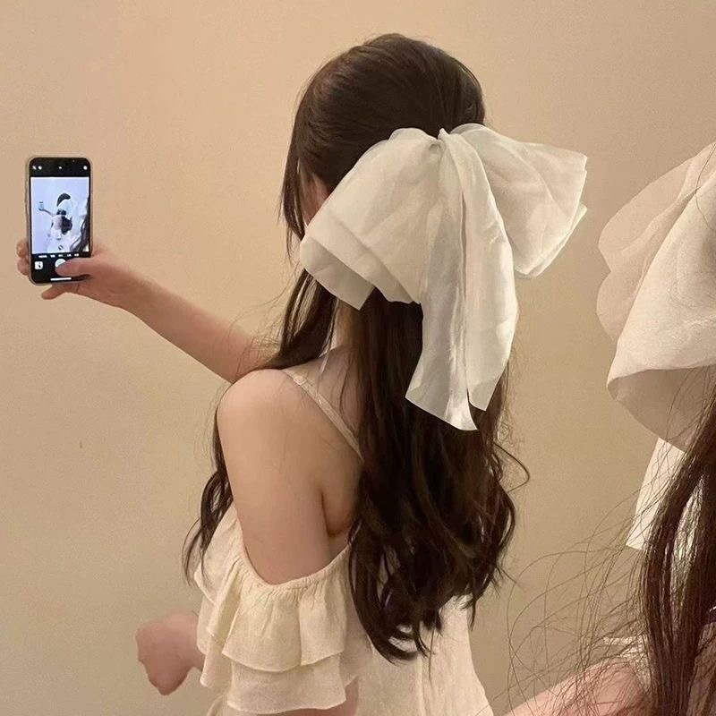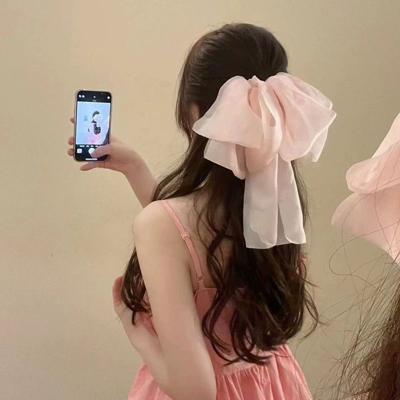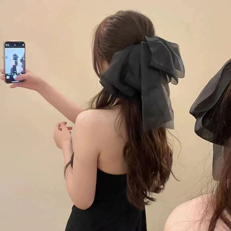 우아한 메쉬 대형 활 바나나 클립 여성의 여름 높은 폰다 뒤 머리 머리핀 우아한 머리핀 세로 클립스토어 가기