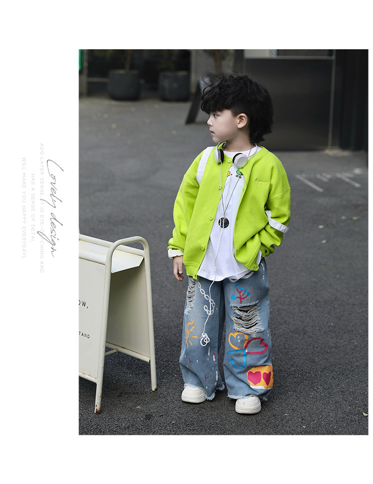 지미 엄마 아동복 [다채로운] 봄 새로운 어린이 컬러 매일 조커 니트 카디건 재킷