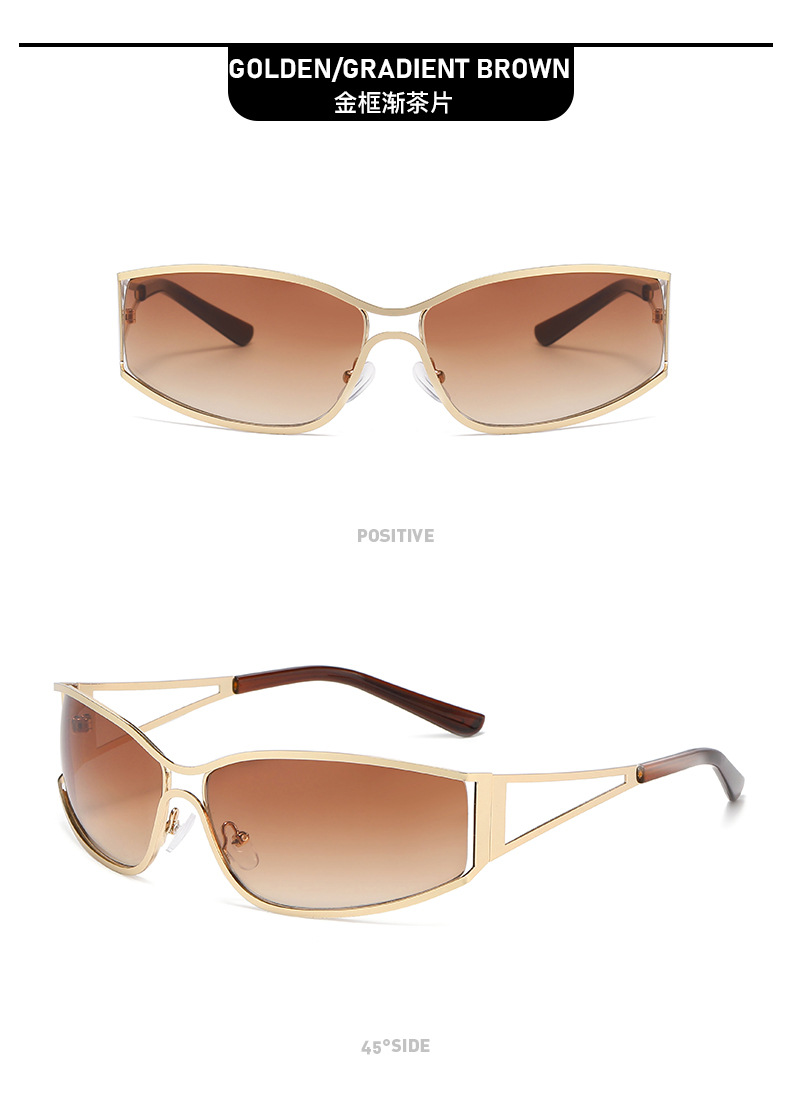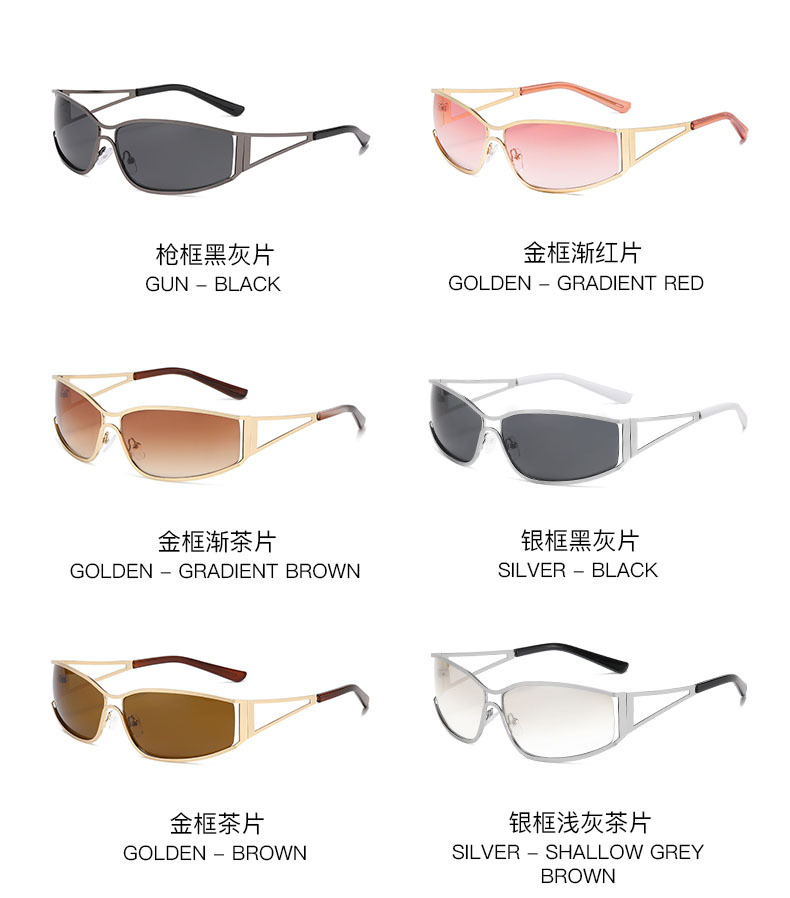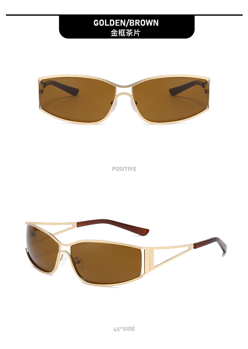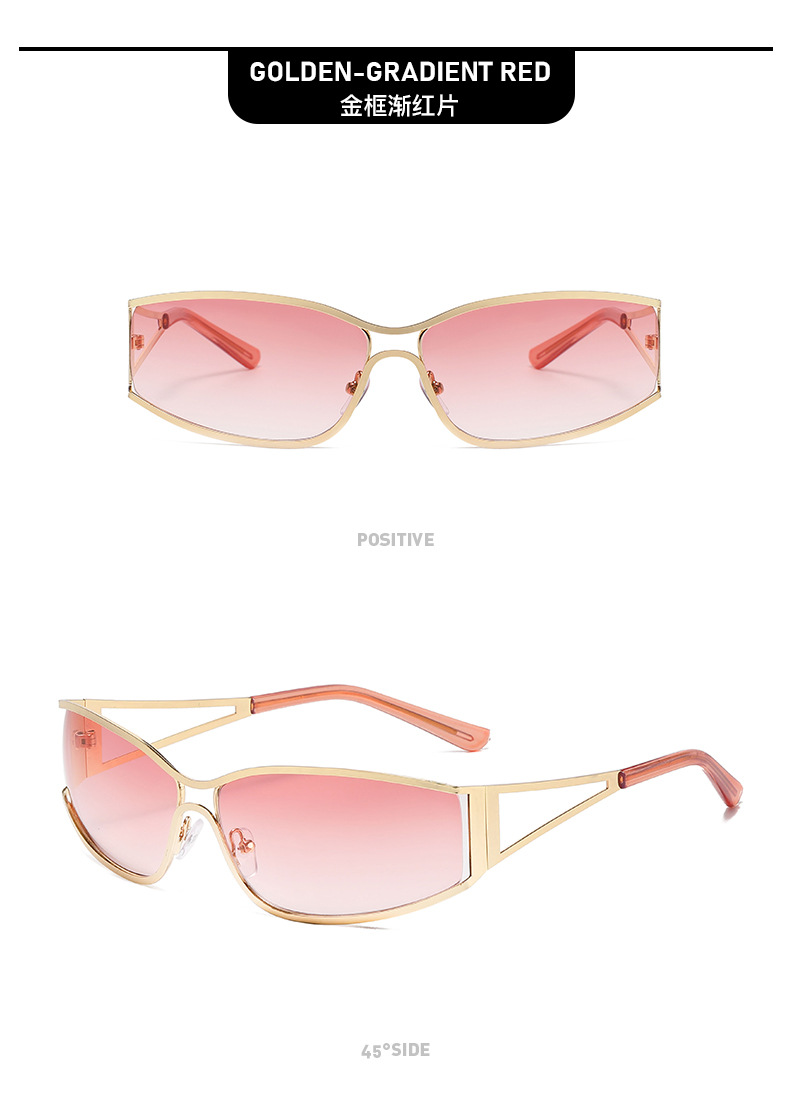 새로운 유럽과 미국의 뜨거운 소녀 스타일 선글라스 기술 복고풍 좁은 프레임 선글라스 중공 금속 야외 승마 선 스크린 거울