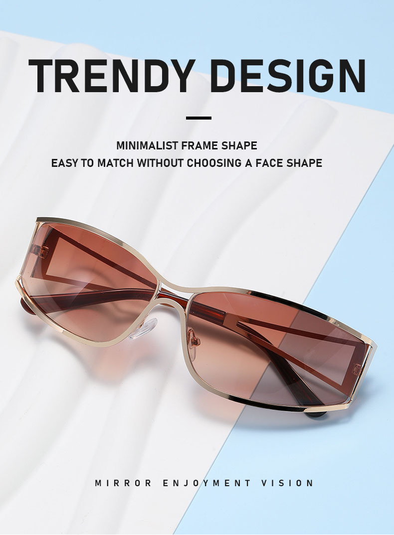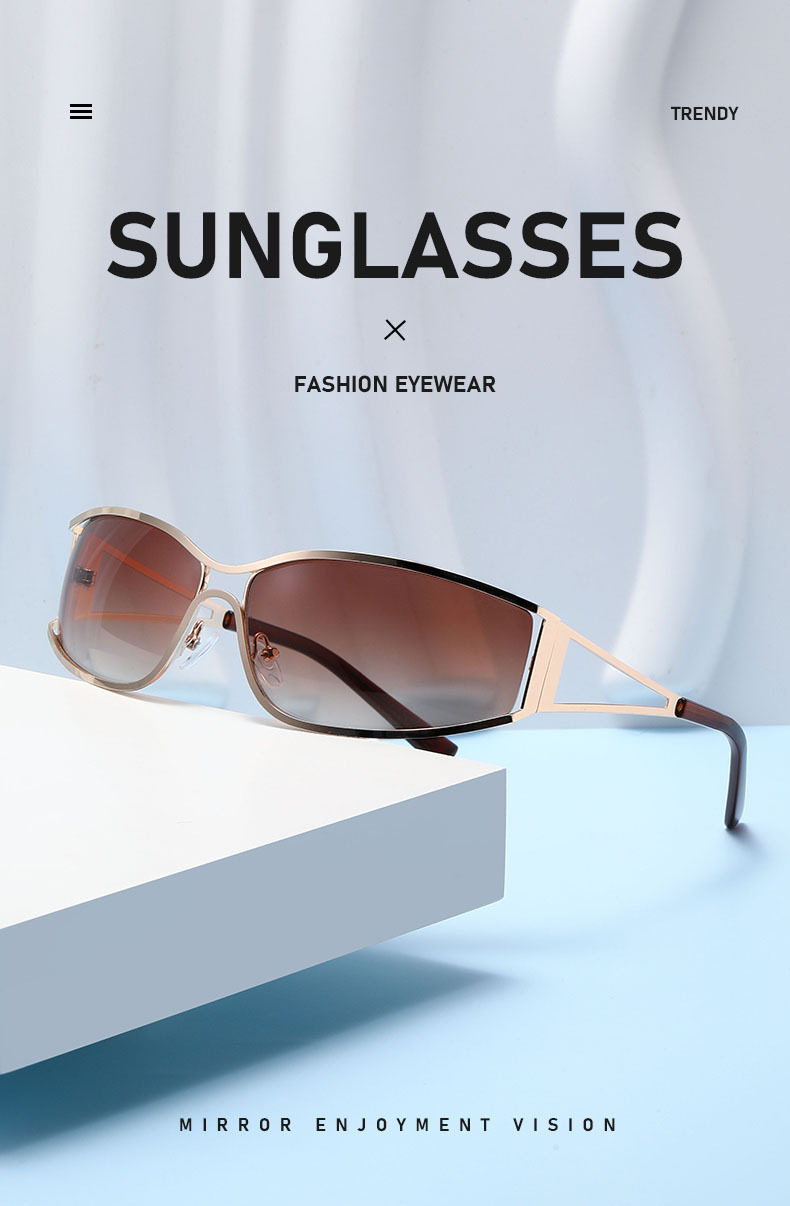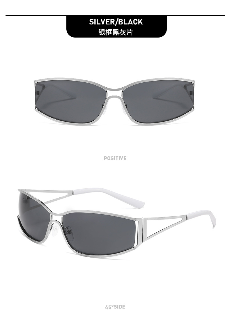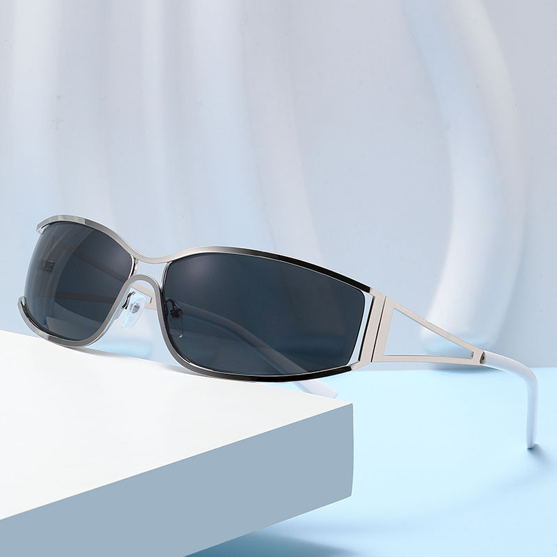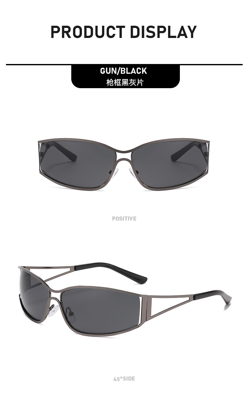 새로운 유럽과 미국의 뜨거운 소녀 스타일 선글라스 기술 복고풍 좁은 프레임 선글라스 중공 금속 야외 승마 선 스크린 거울