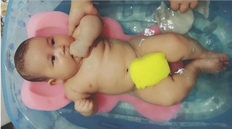 아기 목욕 스폰지 패드 아기 목욕 앉아 미끄럼 방지 그물 가방 신생아 욕조 홀러를위한 유니버설 목욕 랙