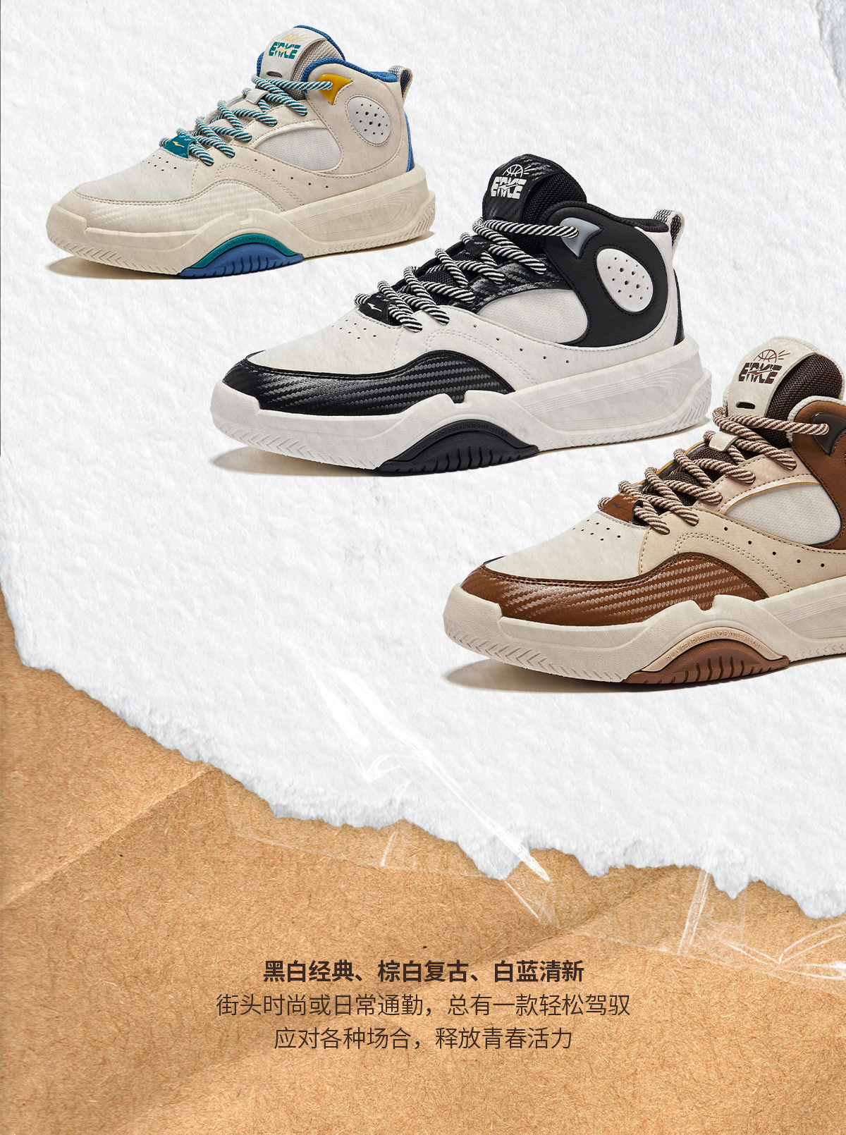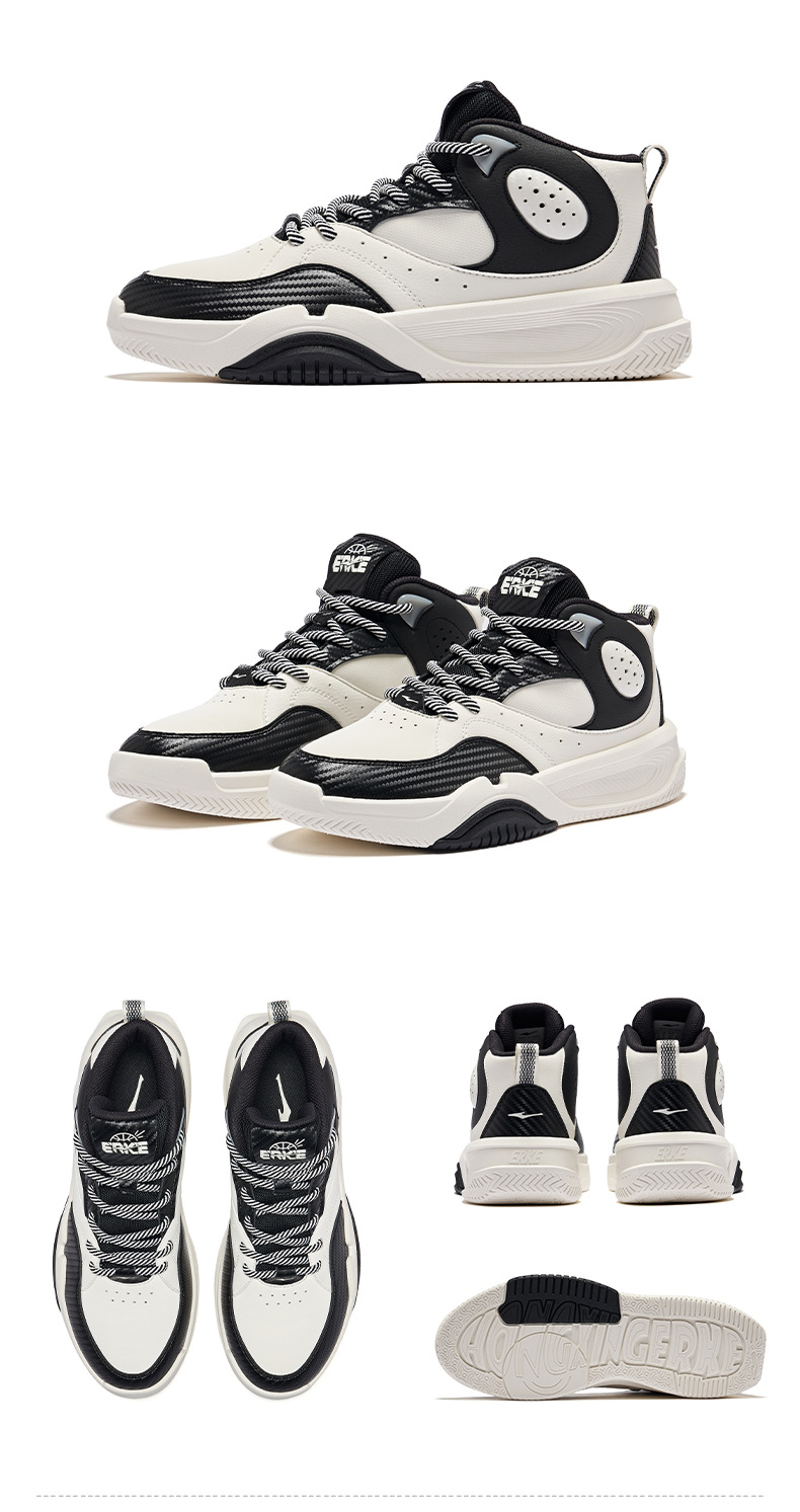 Qingtian Hongxing Erke 남성 운동화 흑백 여름 하이 탑 캐주얼 신발 가죽 두꺼운 밑창 농구 스타일 스포츠 신발