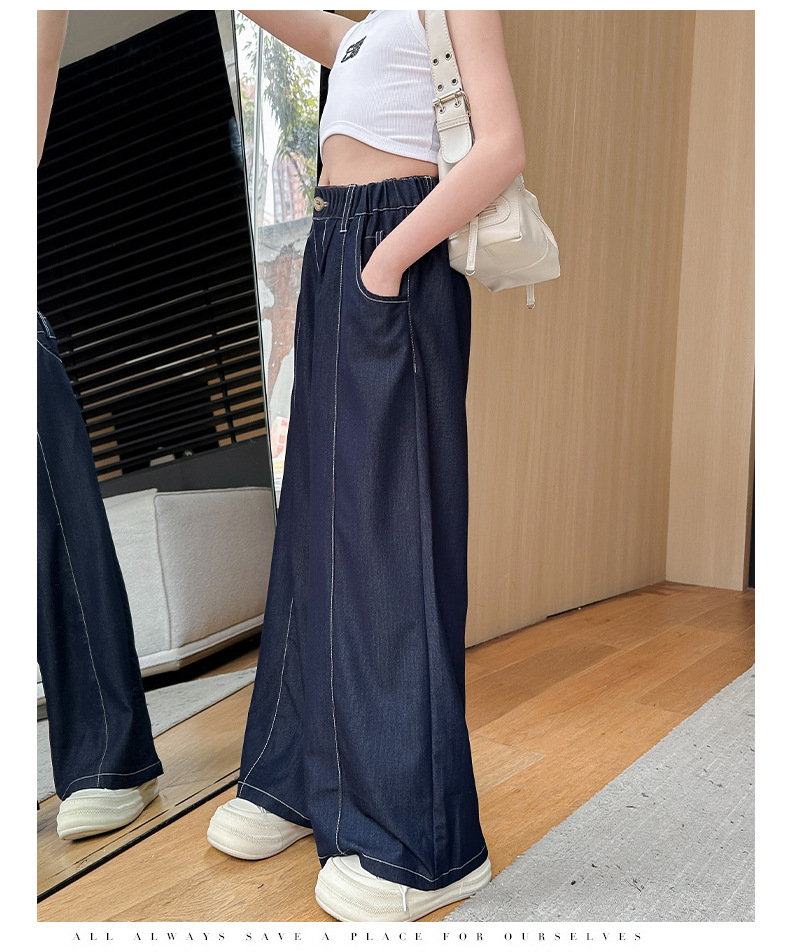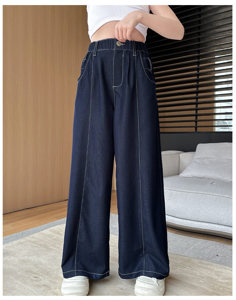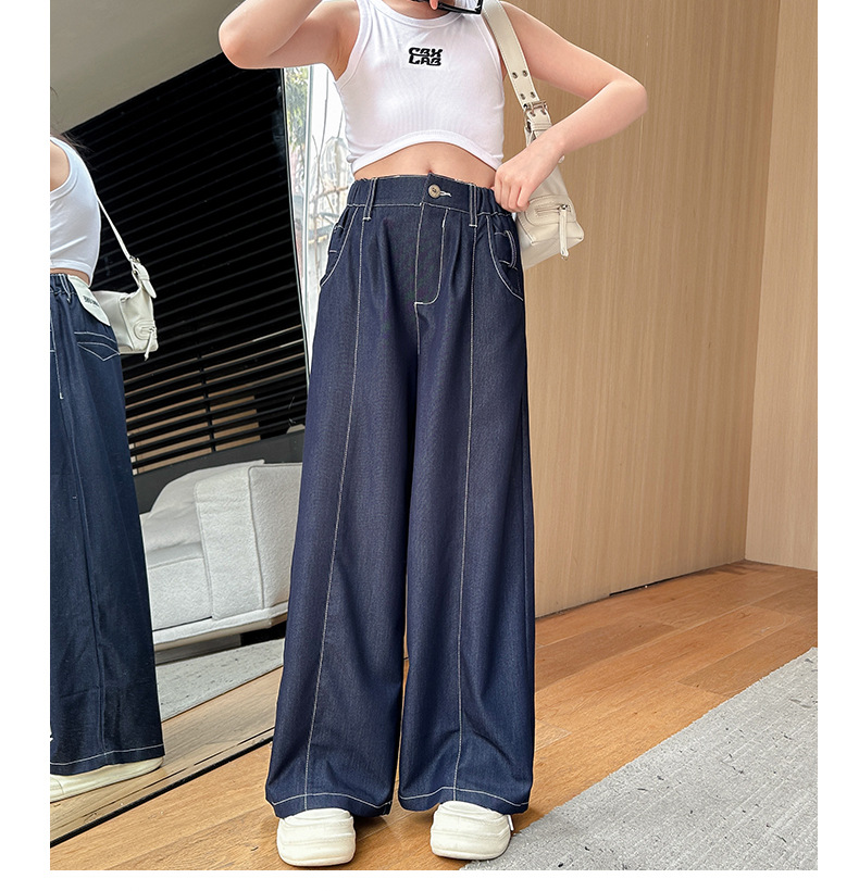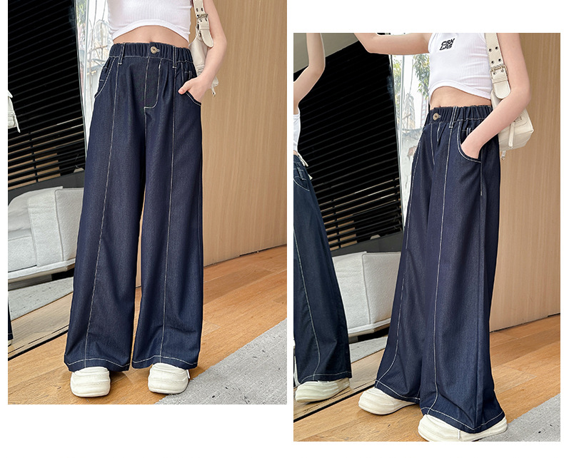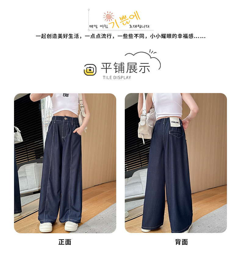 소녀 바지 2025 여름 새로운 얇은 어린이 느슨한 스트레이트 넓은 다리 바지 여름 큰 어린이 얼음 실크 청바지스토어 가기