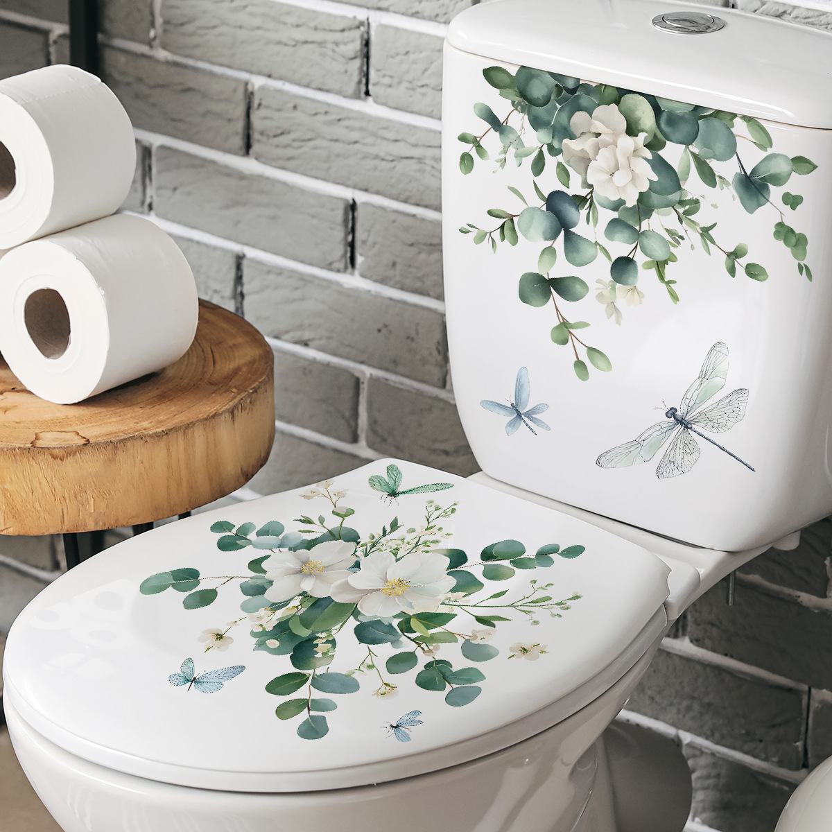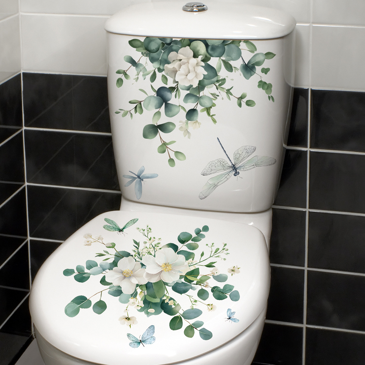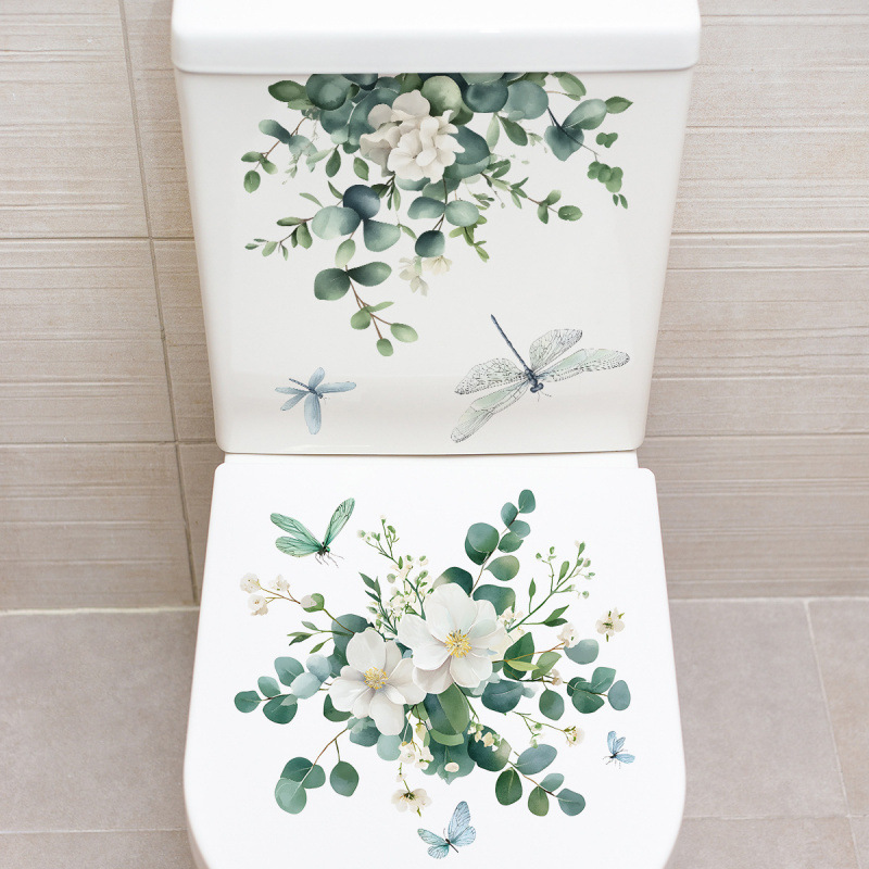 그린 식물 시뮬레이션 흰색 꽃 화장실 스티커 욕실 화장실 장식 스티커 신선한 꽃 벽 스티커스토어 가기