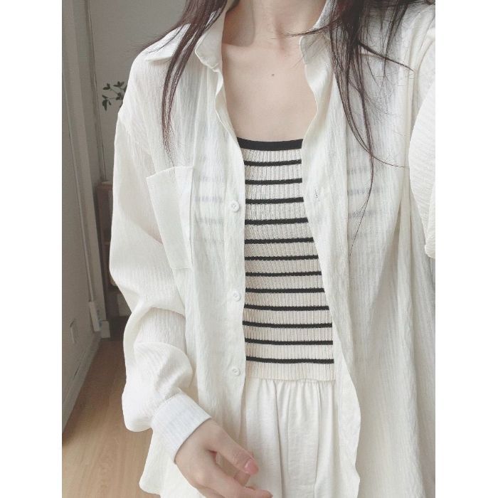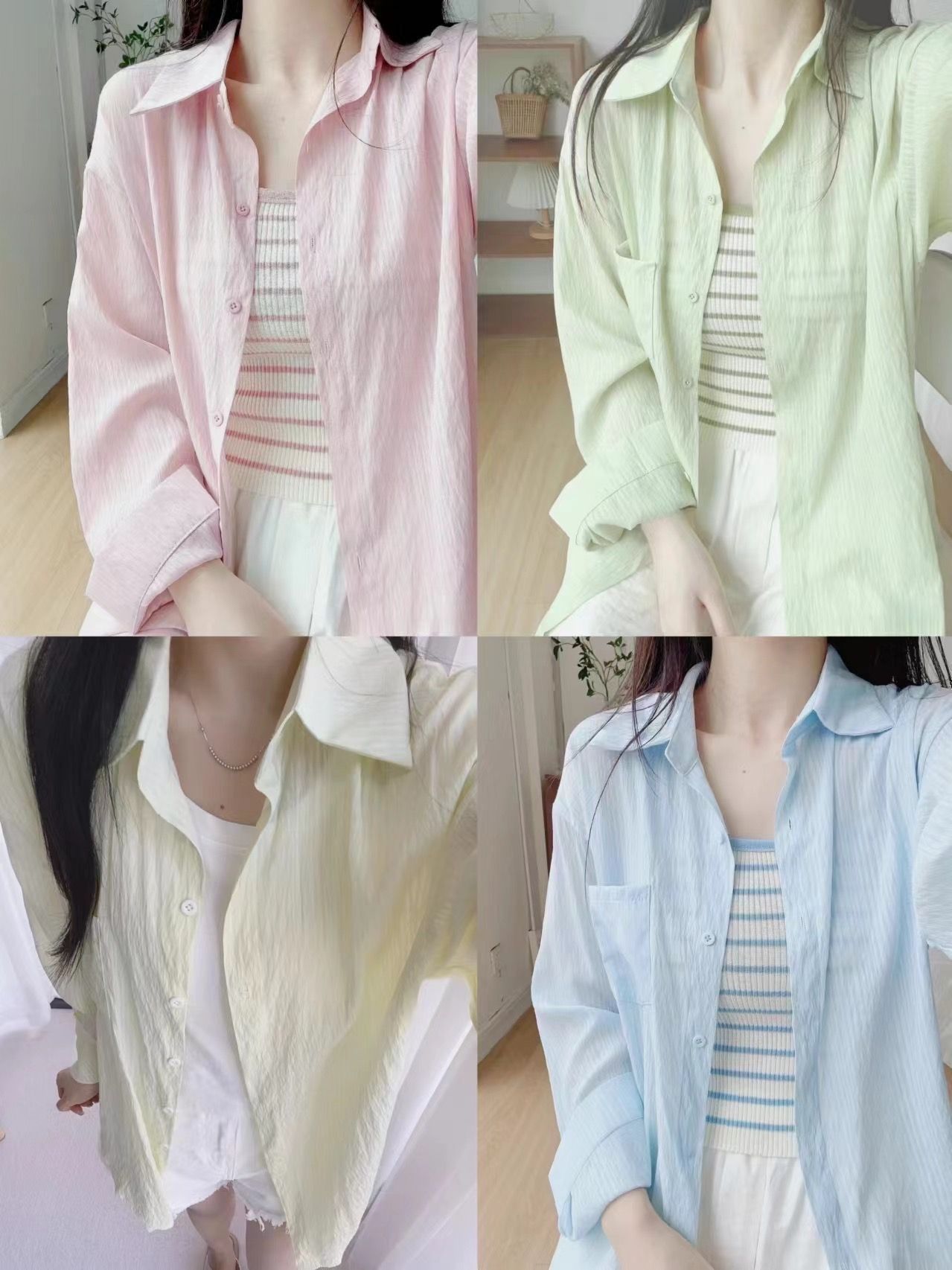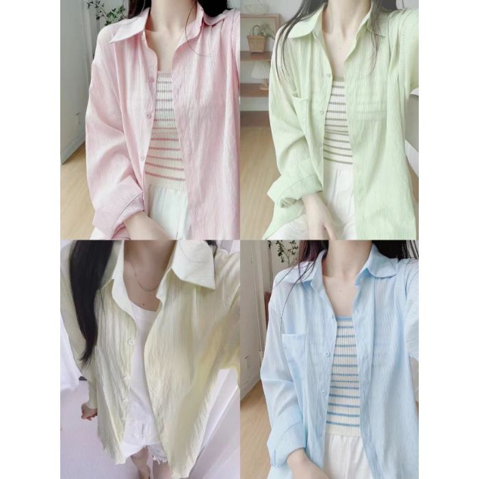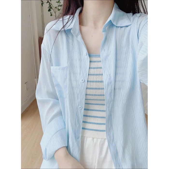 선스크린 셔츠 코트 여자 여름 2025 새로운 민트 그린 쉬폰 셔츠 프랑스 작은 셔츠 틈새 이른 봄스토어 가기