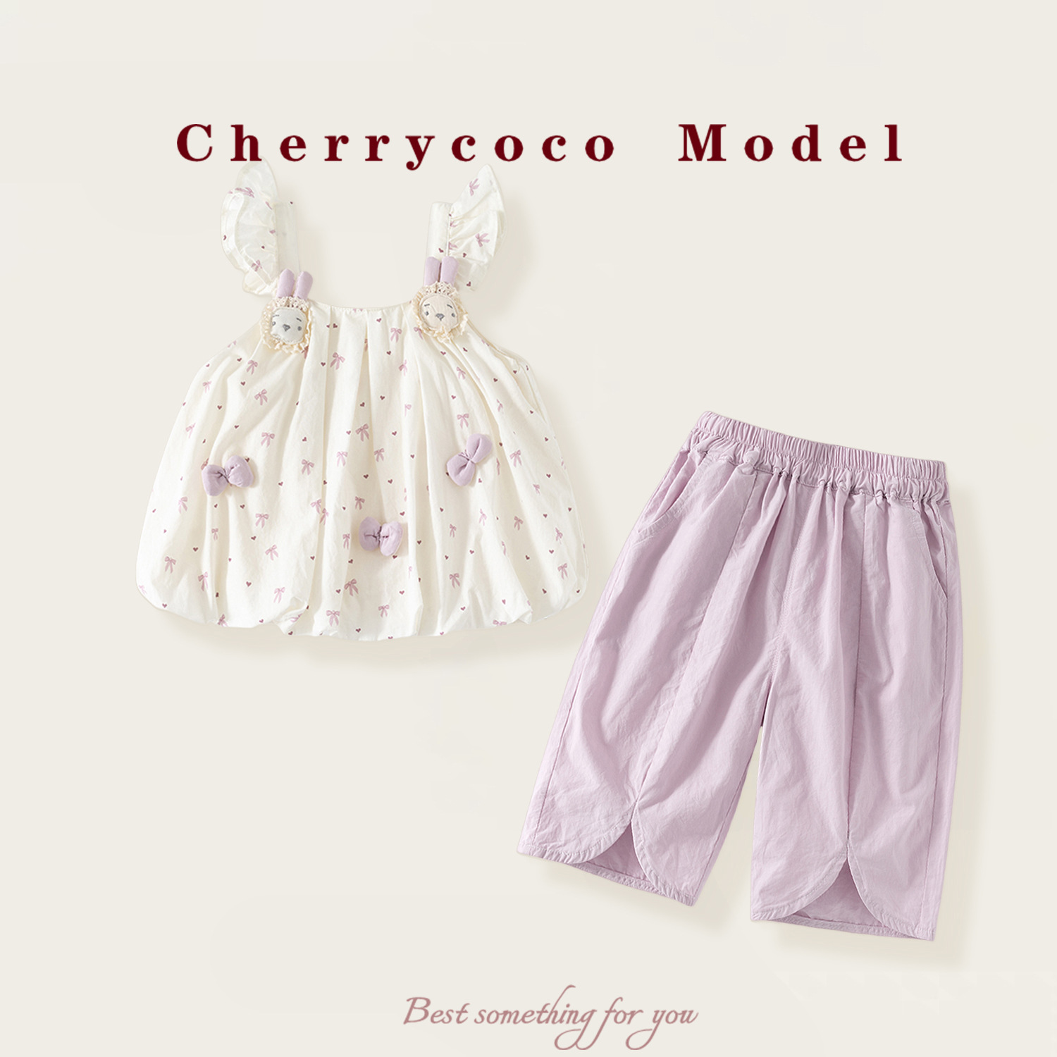 CHERRYCOCO 소녀 세트 여름 25 새로운 스타일 유행 어린이 슬링 탑 얇은 바지 여름스토어 가기