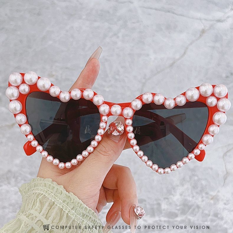 폭발성 하트 모양의 진주 선글라스 개인화 된 올매치 인터넷 축하 복숭아 심장 달콤한 사랑 선글라스