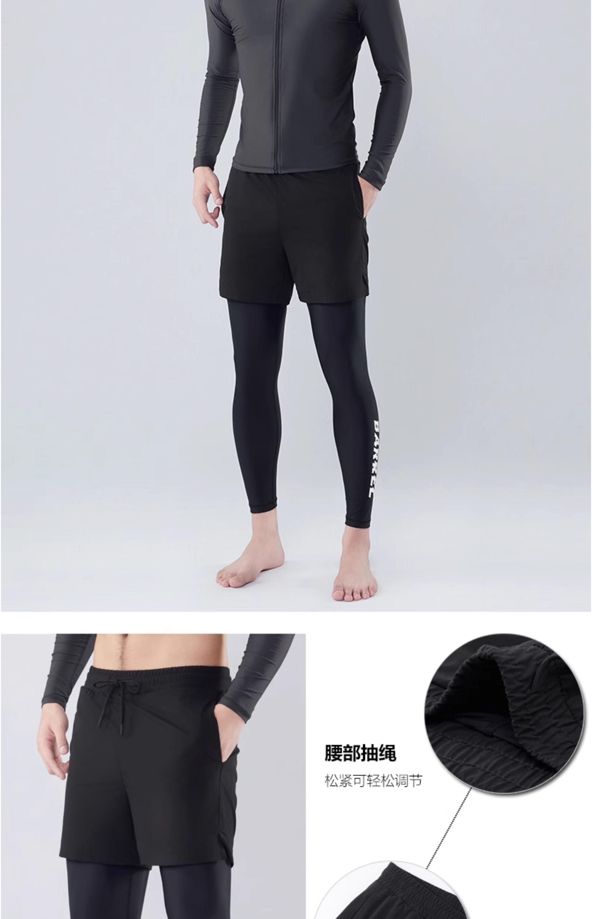 • <<남성용 블랙 앤 그레이 지퍼 탑 + 블랙 안감 반바지 투피스 세트>>