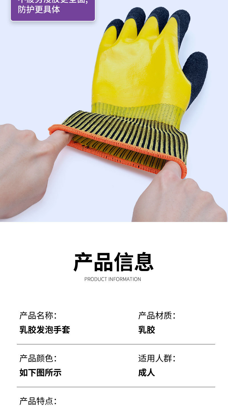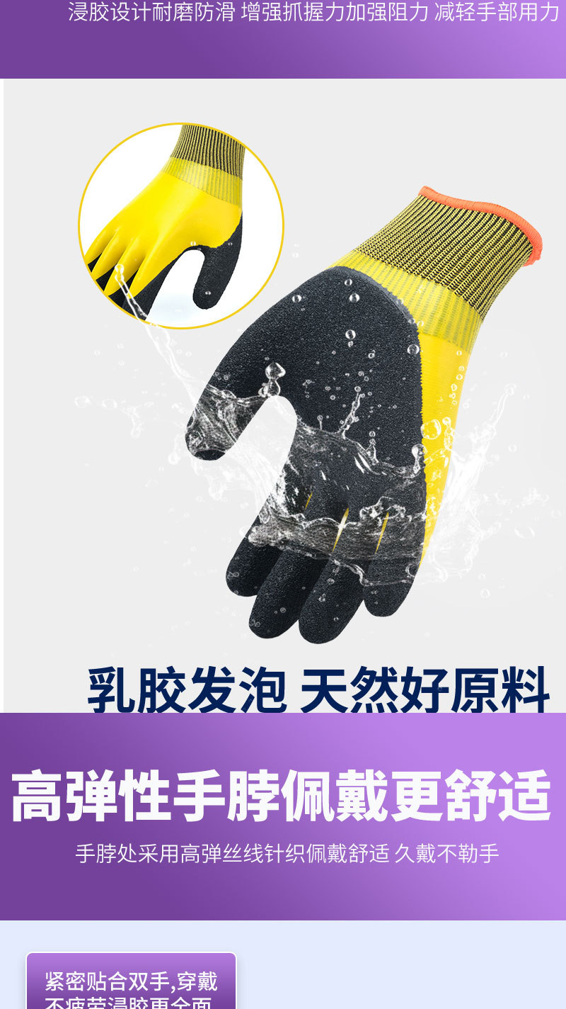 방수 노동 보호 장갑, 이중층 고무 코팅, 내마모성, 미끄럼 방지, 다기능, 실용적, 내산성, 보호용, 태양광스토어 가기