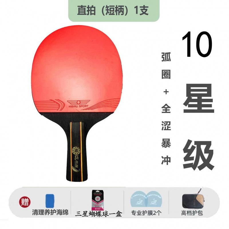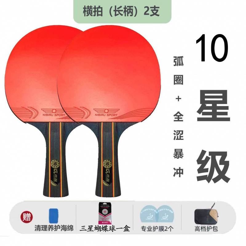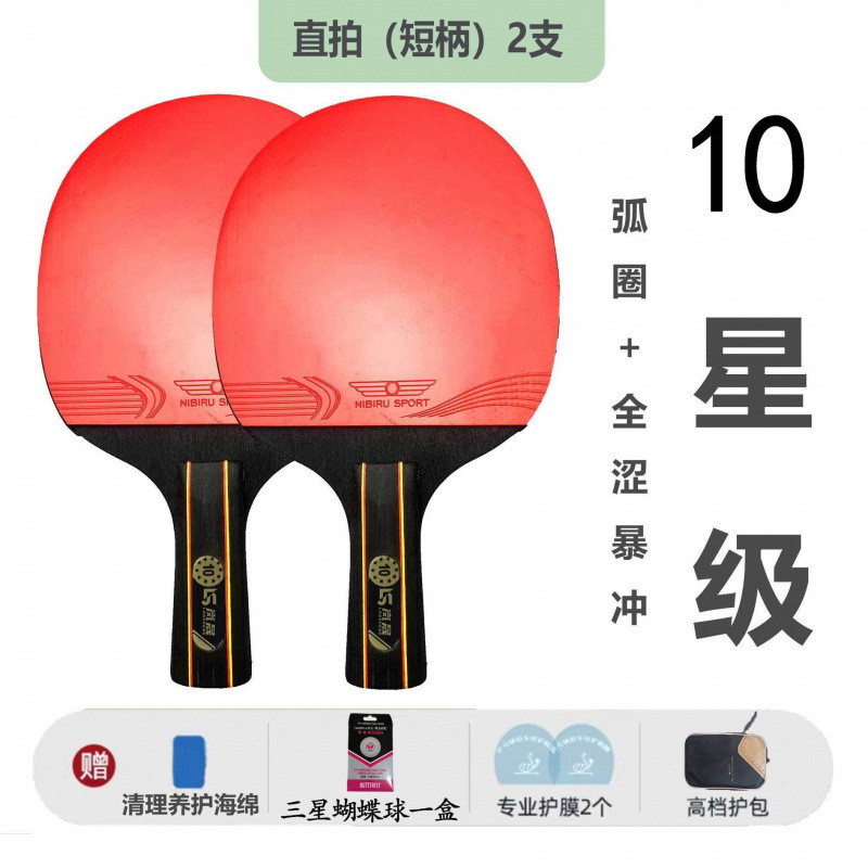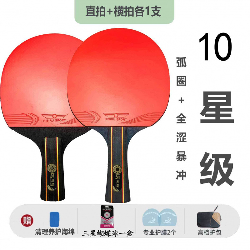 탁구 라켓 10 성급 빨간색과 검은 색 양면 안티 접착제 수평 라켓 스트레이트 라켓 초급 학생 성인 탁구 라켓 세트스토어 가기