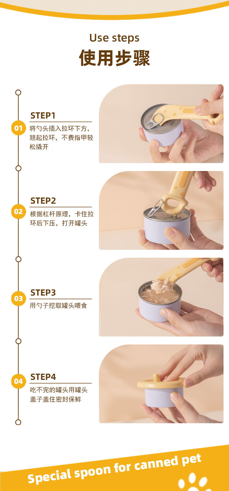 새로운 애완 동물 고양이 숟가락 고양이 다기능 할 수있는 오프너 애완 동물 젖은 음식 먹이 숟가락 오픈 뚜껑 고양이 숟가락 세트