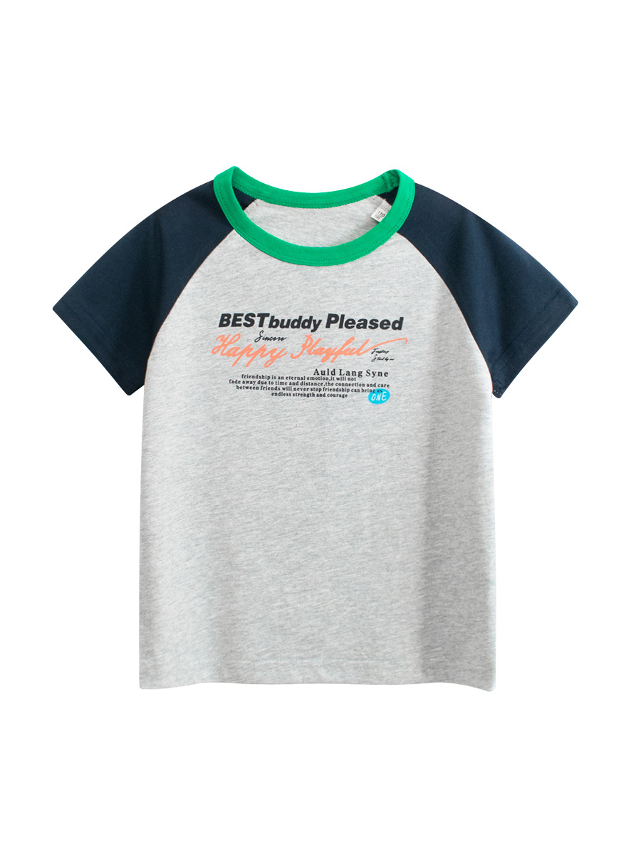 27 키즈 한국어 버전의 아동복 조수 여름 2025 새로운 소년 편지 반팔 티셔츠 아기 옷 한 세대 머리카락