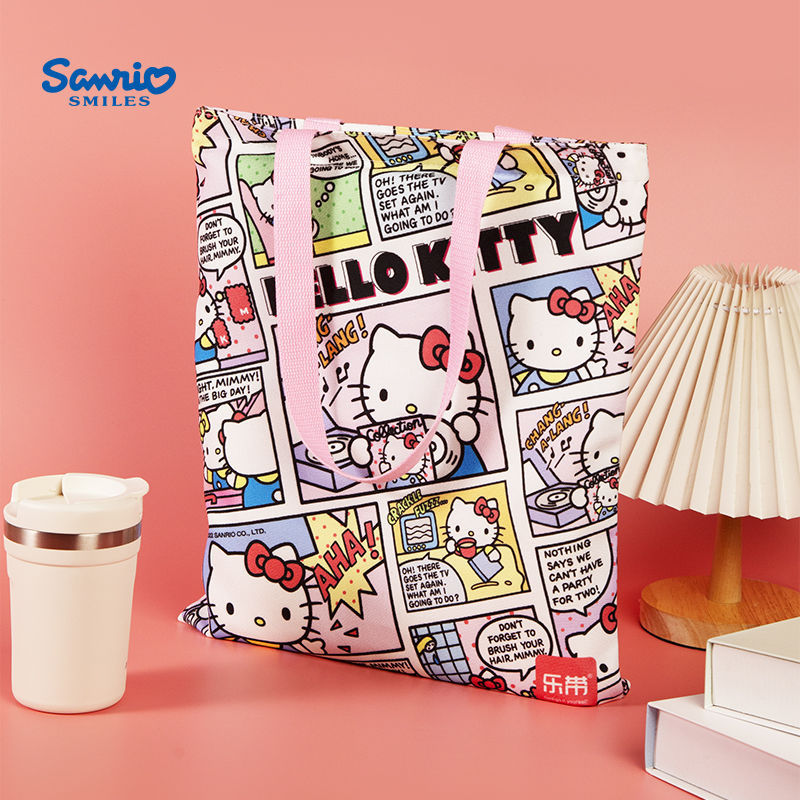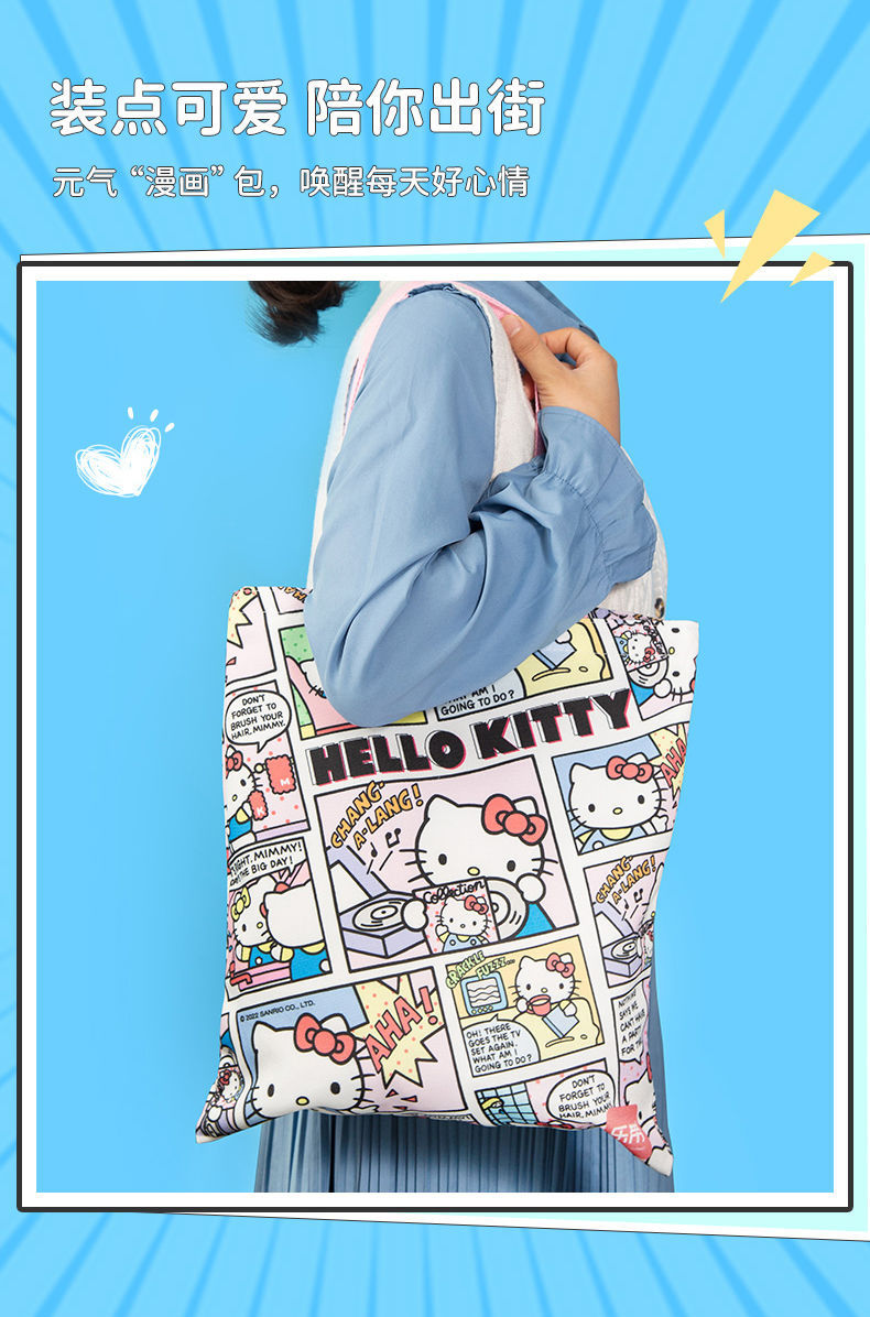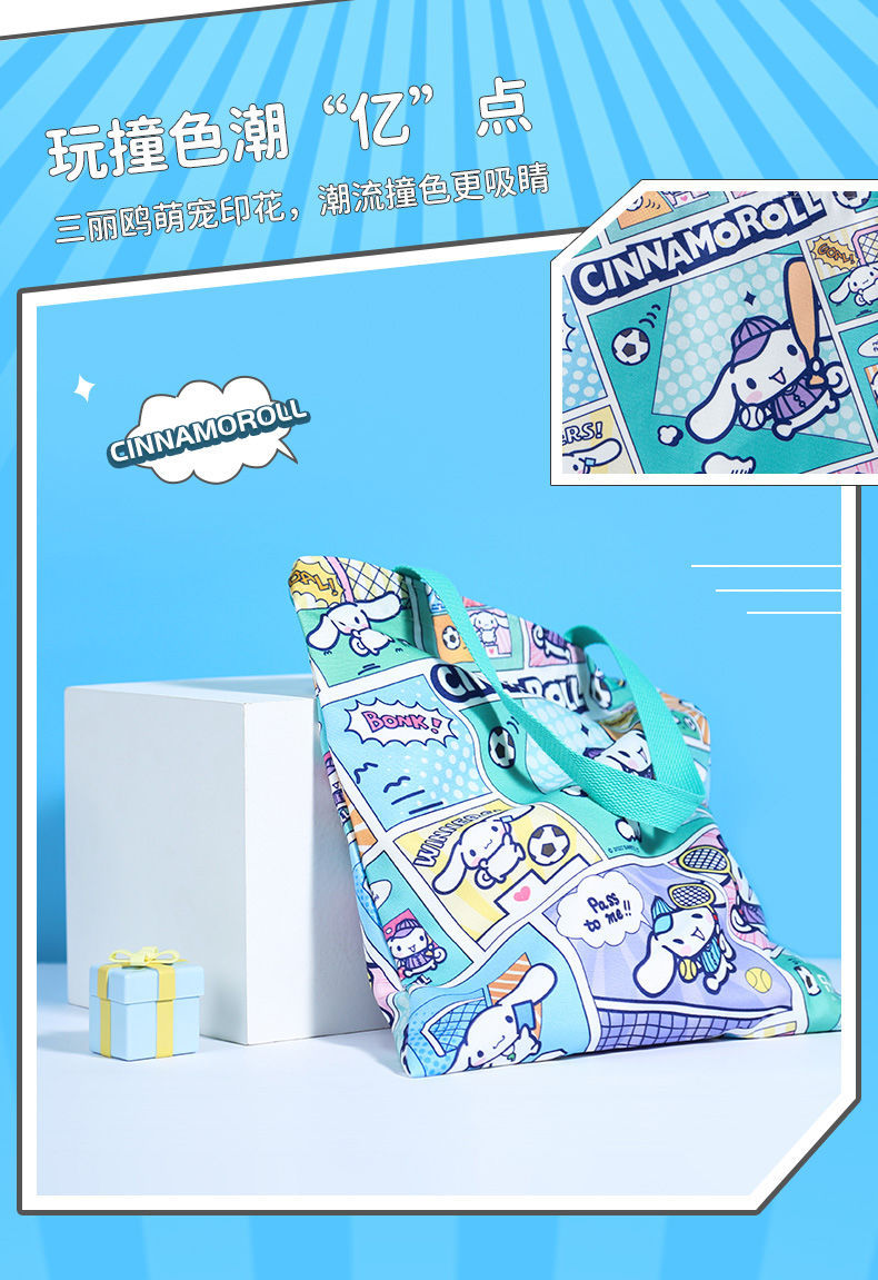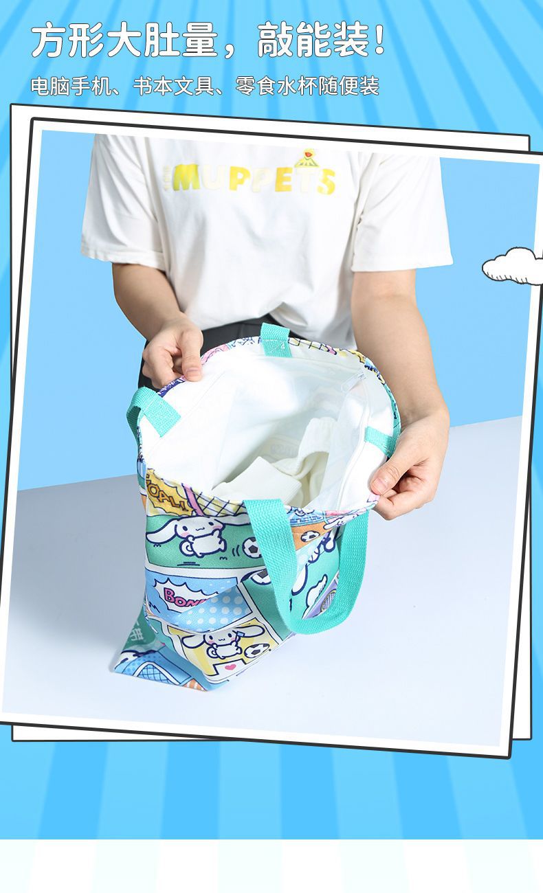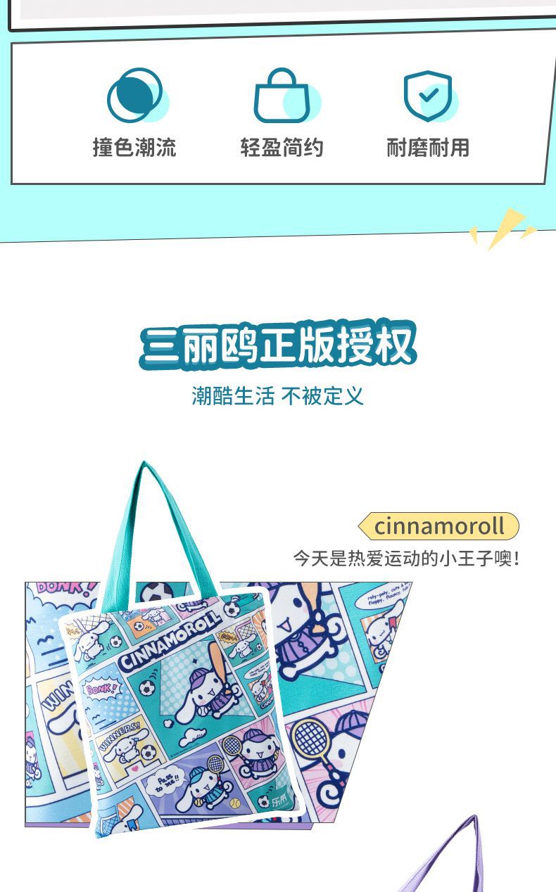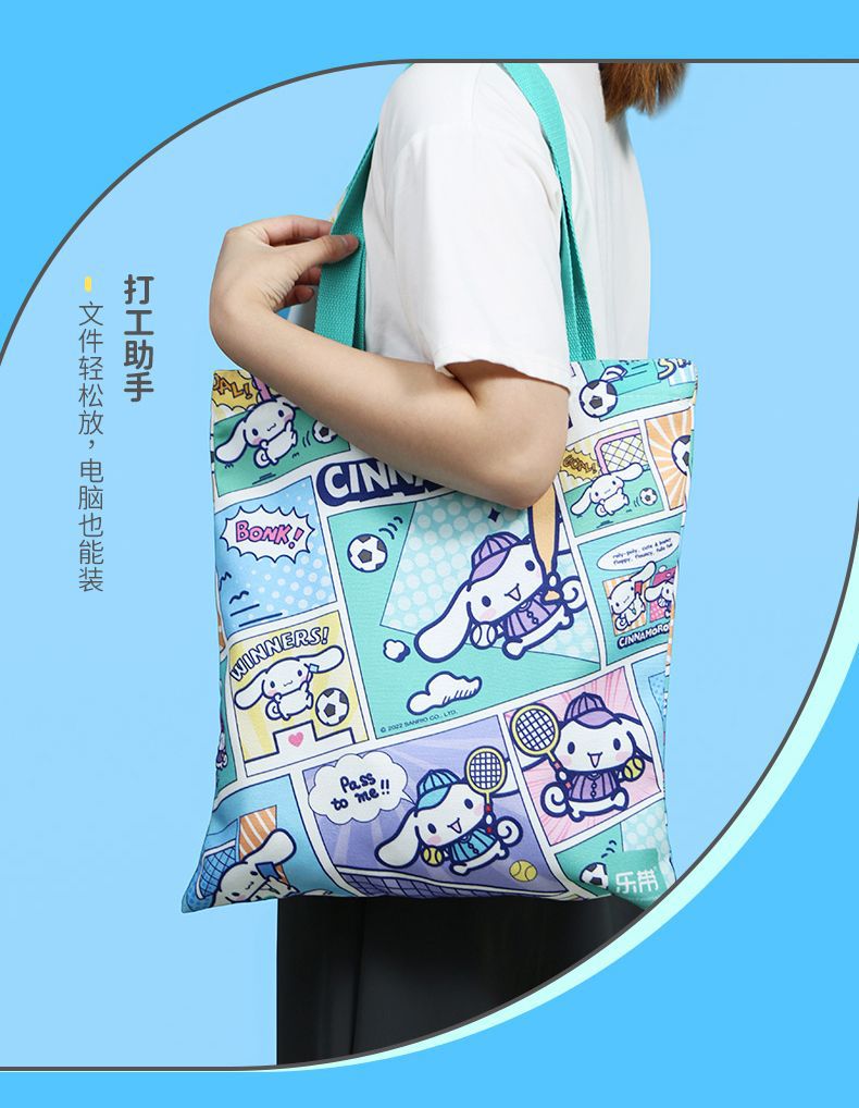 정품 산리오 만화 항해 가방 귀여운 만화 학생 휴대용 책 가방 어깨 가방 대용량 캔버스 가방스토어 가기
