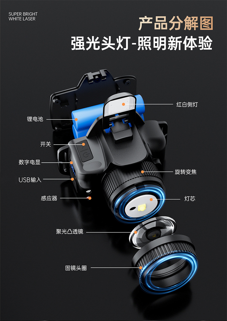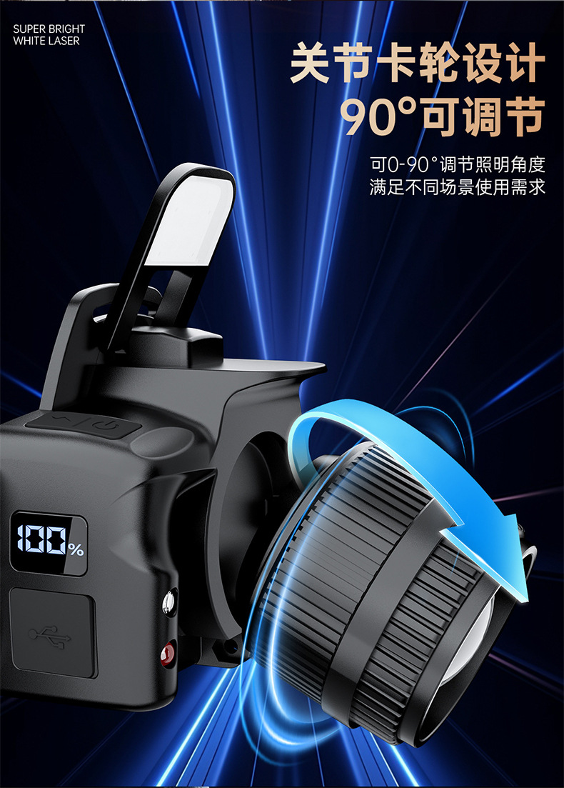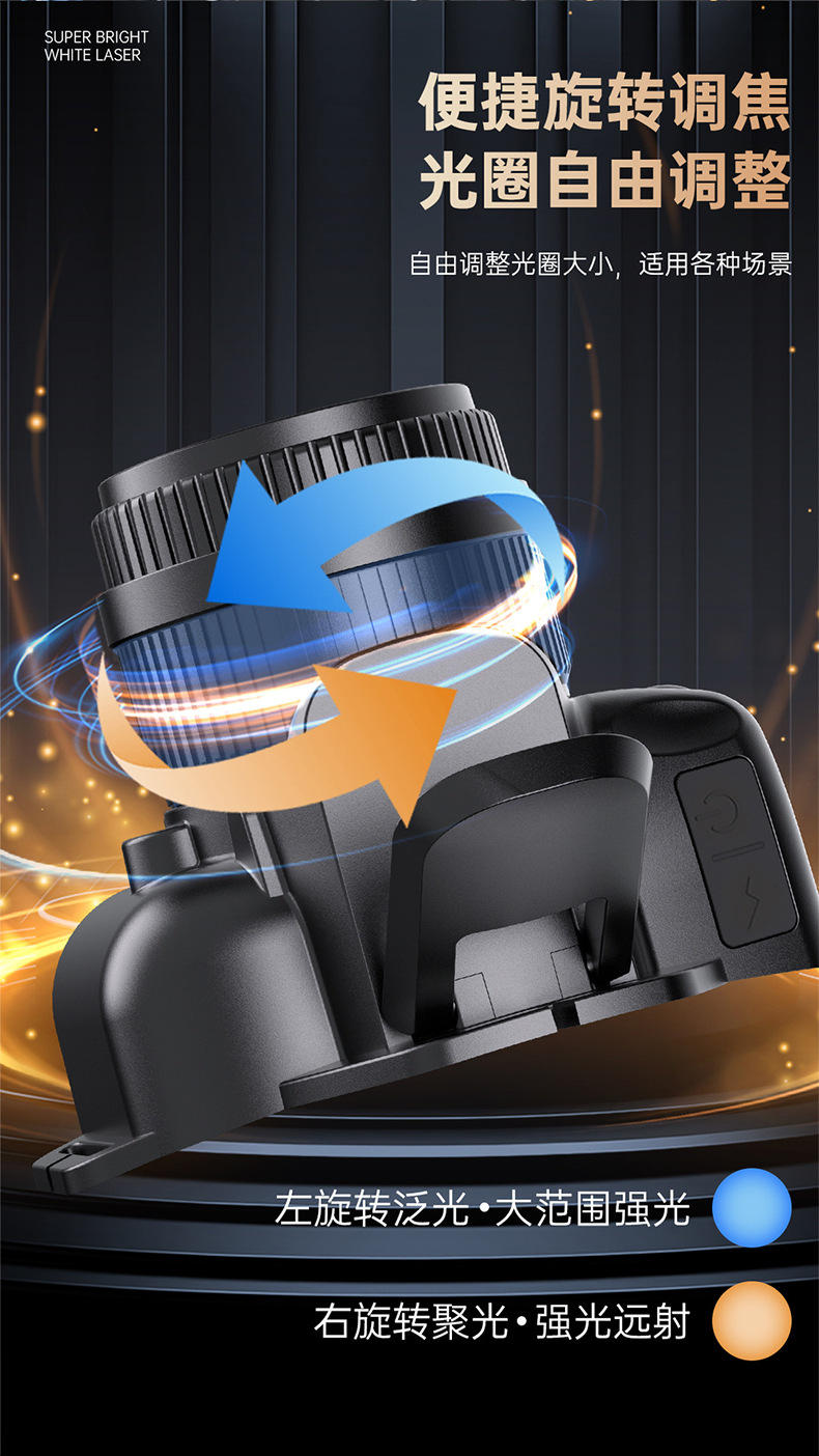 국경 긴 내구성 강한 빛 높은 루멘 야외 휴대용 로타리 줌 하이 파워 어드벤처 조명 낚시 헤드 라이트