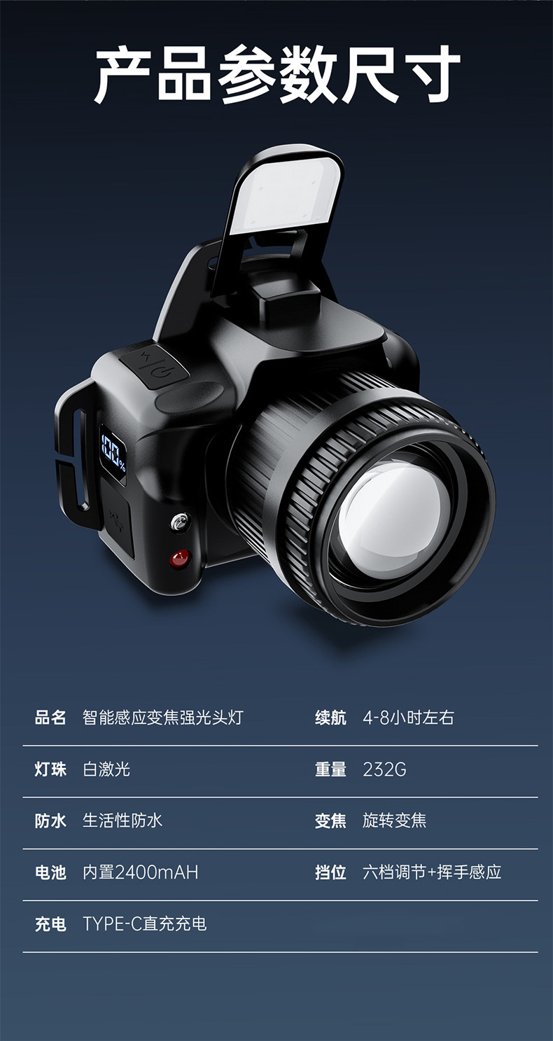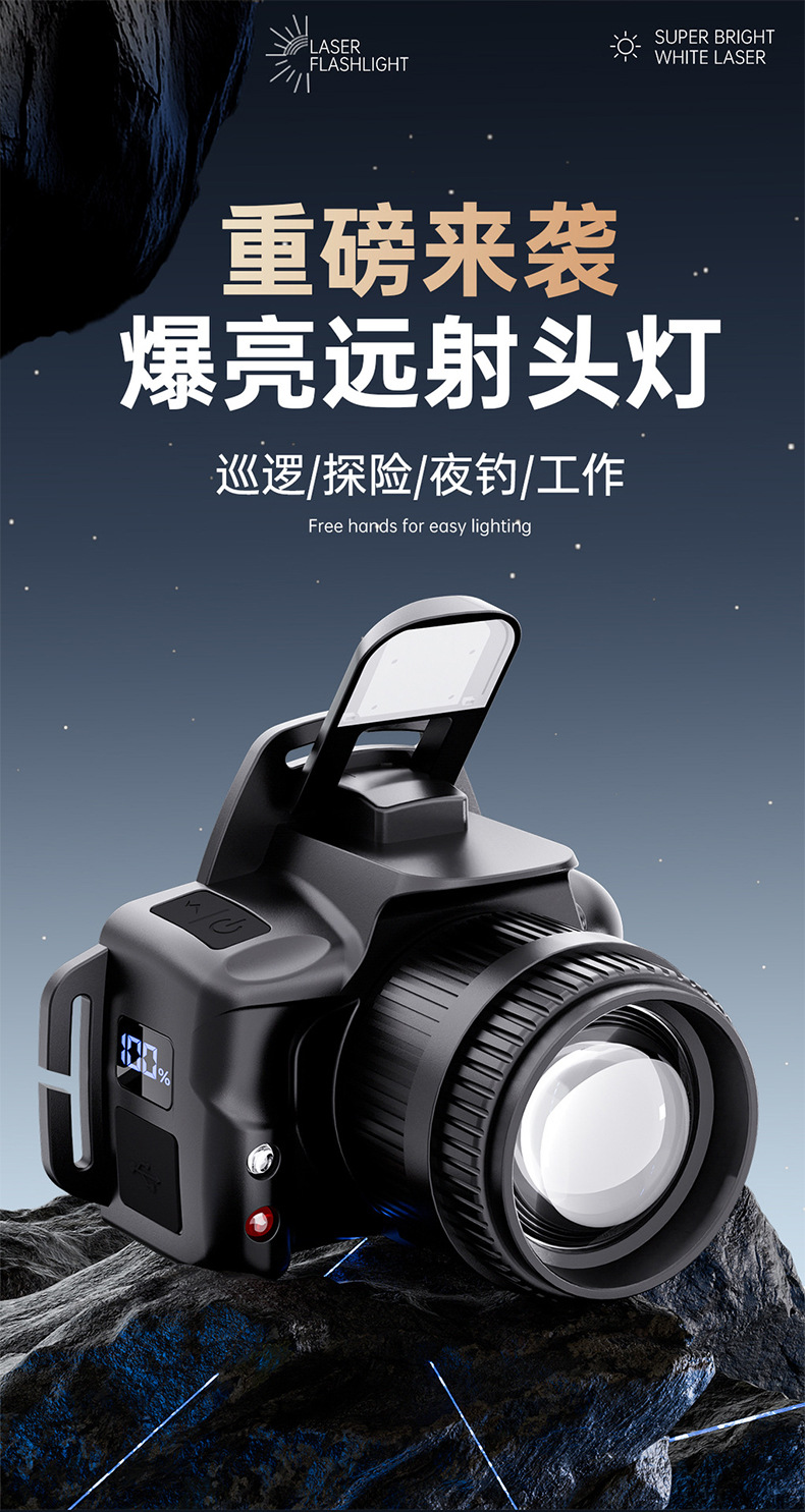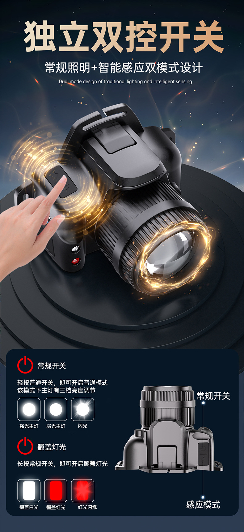 국경 긴 내구성 강한 빛 높은 루멘 야외 휴대용 로타리 줌 하이 파워 어드벤처 조명 낚시 헤드 라이트