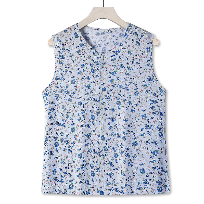 중년 및 노인 여성의 여름 코튼 버클 조끼 민소매 스웨트 셔츠 노인 카디건 양복 조끼 파자마 홈 말 클립스토어 가기