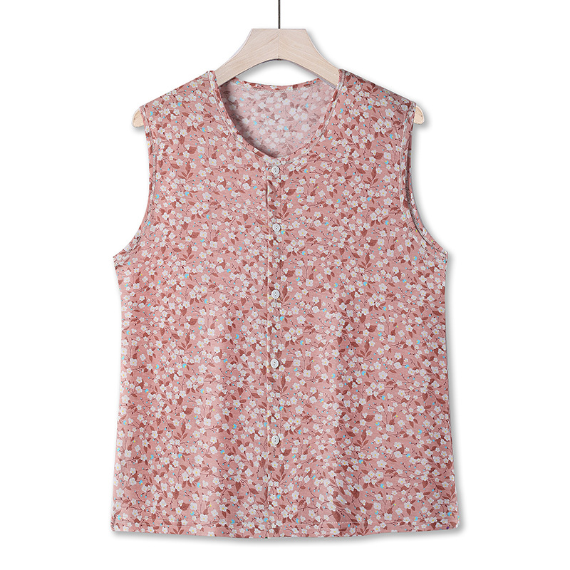 중년 및 노인 여성의 여름 코튼 버클 조끼 민소매 스웨트 셔츠 노인 카디건 양복 조끼 파자마 홈 말 클립