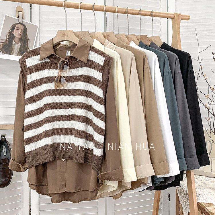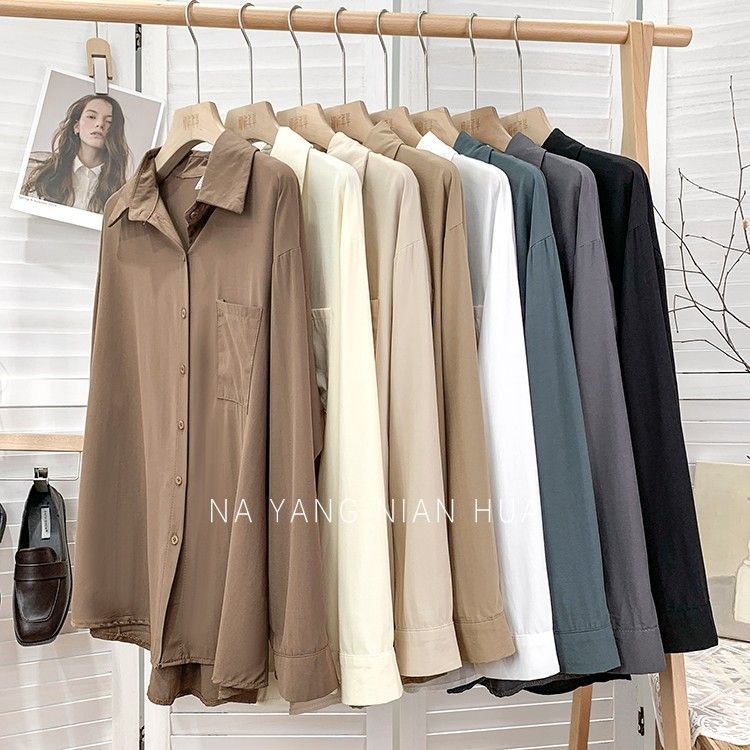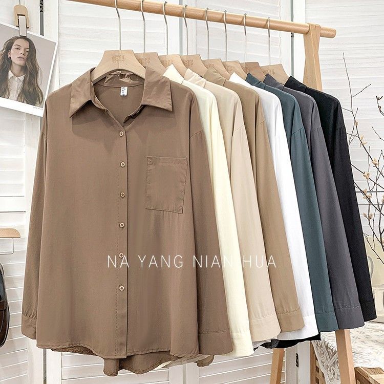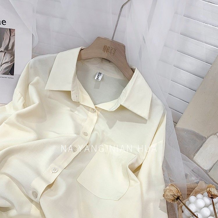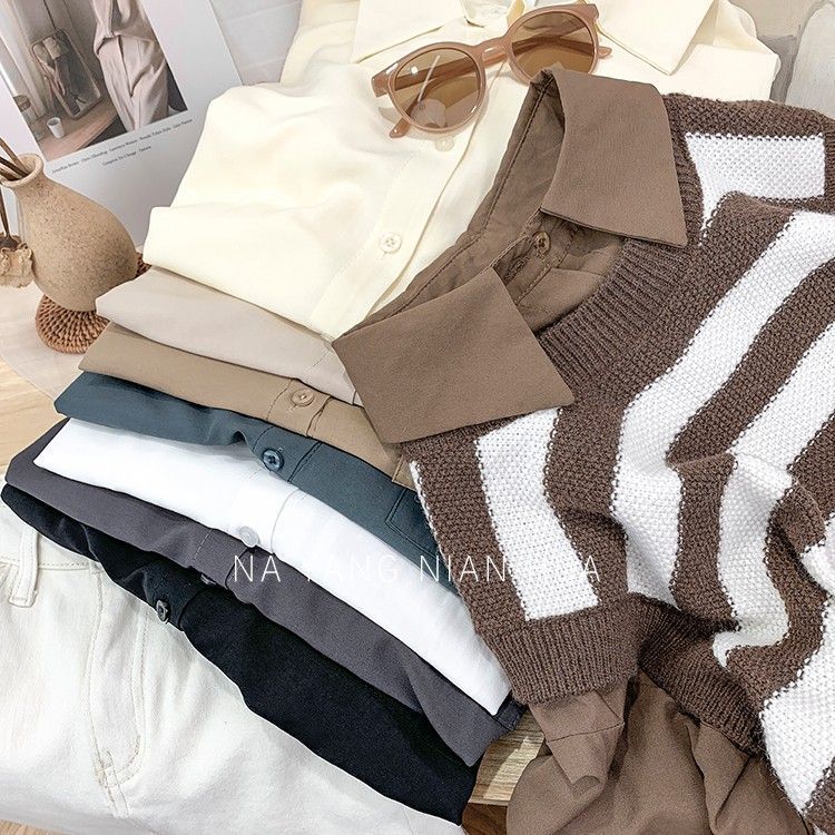 고급 낙엽 느슨한 슬리밍 긴팔 흰색 셔츠 여성의 가을 디자인 틈새 캐주얼 시크 오버랩 탑스토어 가기