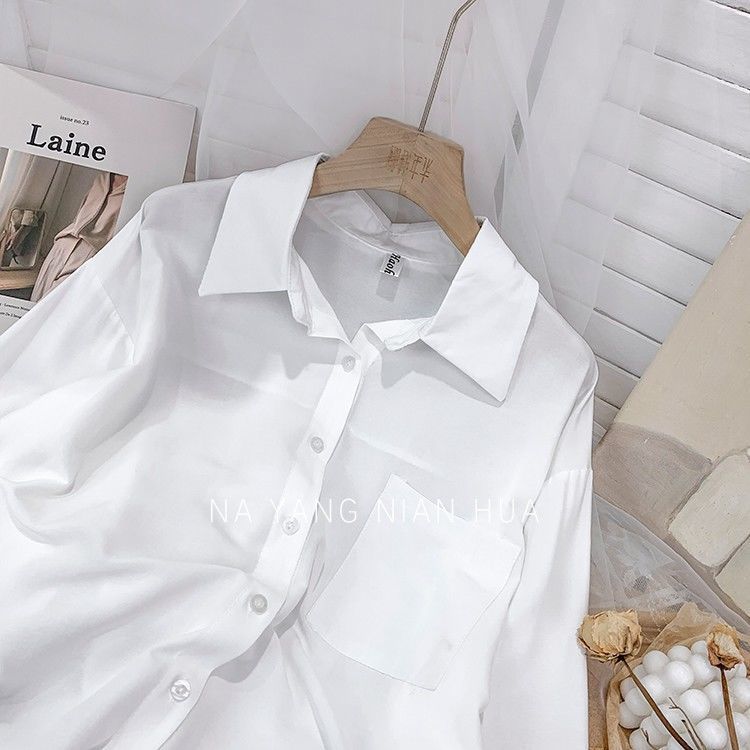 고급 낙엽 느슨한 슬리밍 긴팔 흰색 셔츠 여성의 가을 디자인 틈새 캐주얼 시크 오버랩 탑