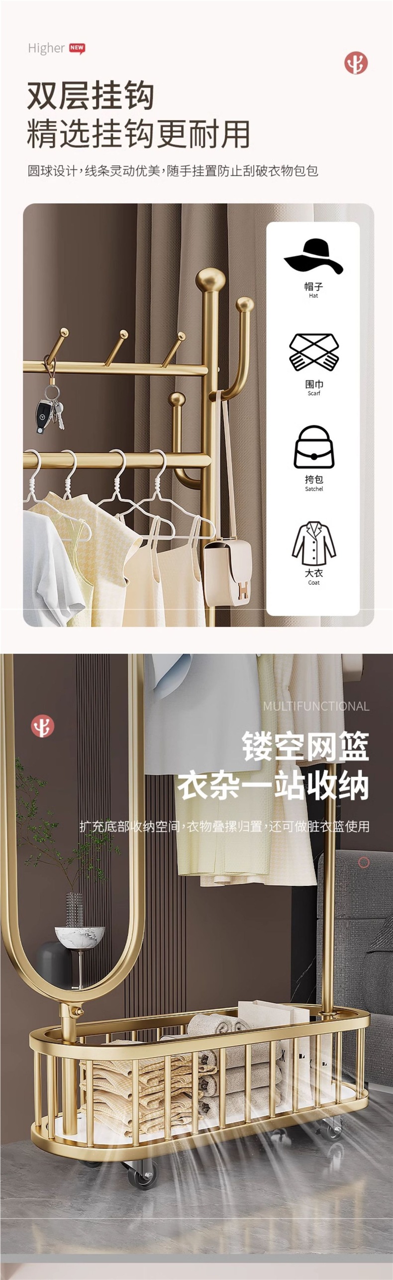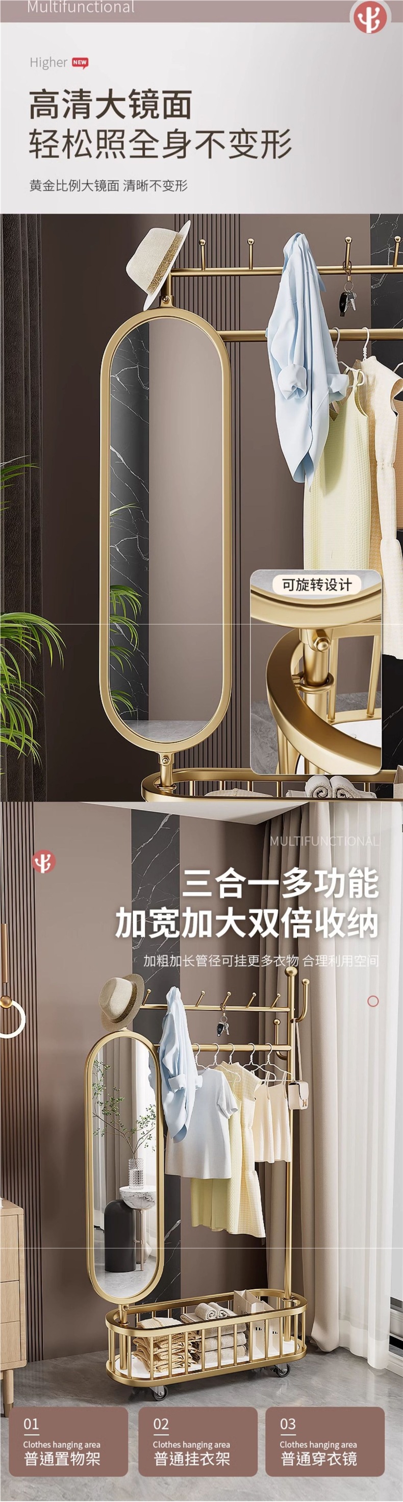전신 거울 바닥 스탠딩 옷걸이 홈 침실 회전식 이동식 다기능 피팅 드레싱 거울 라이트 럭셔리 의류스토어 가기